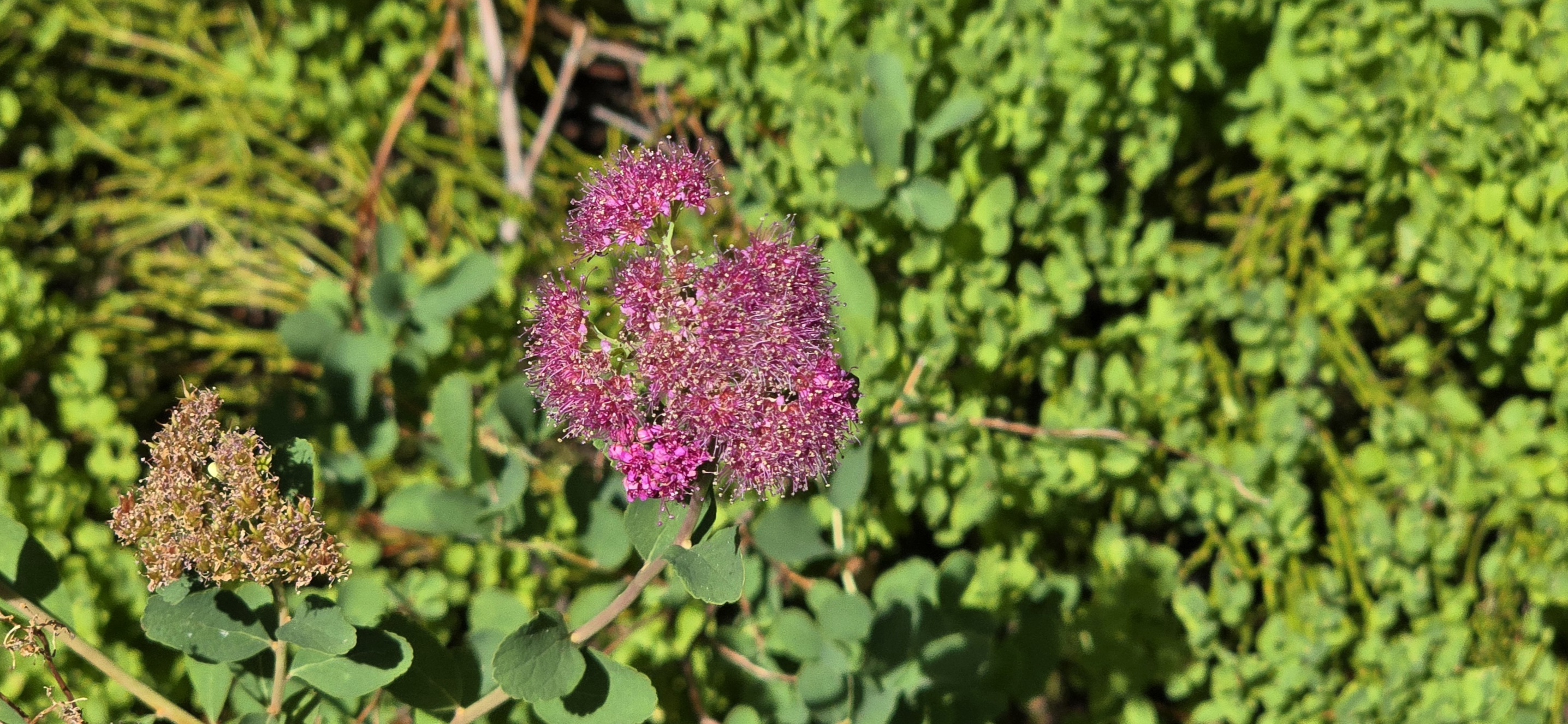 덤불로 많은 꽃이 핍니다.