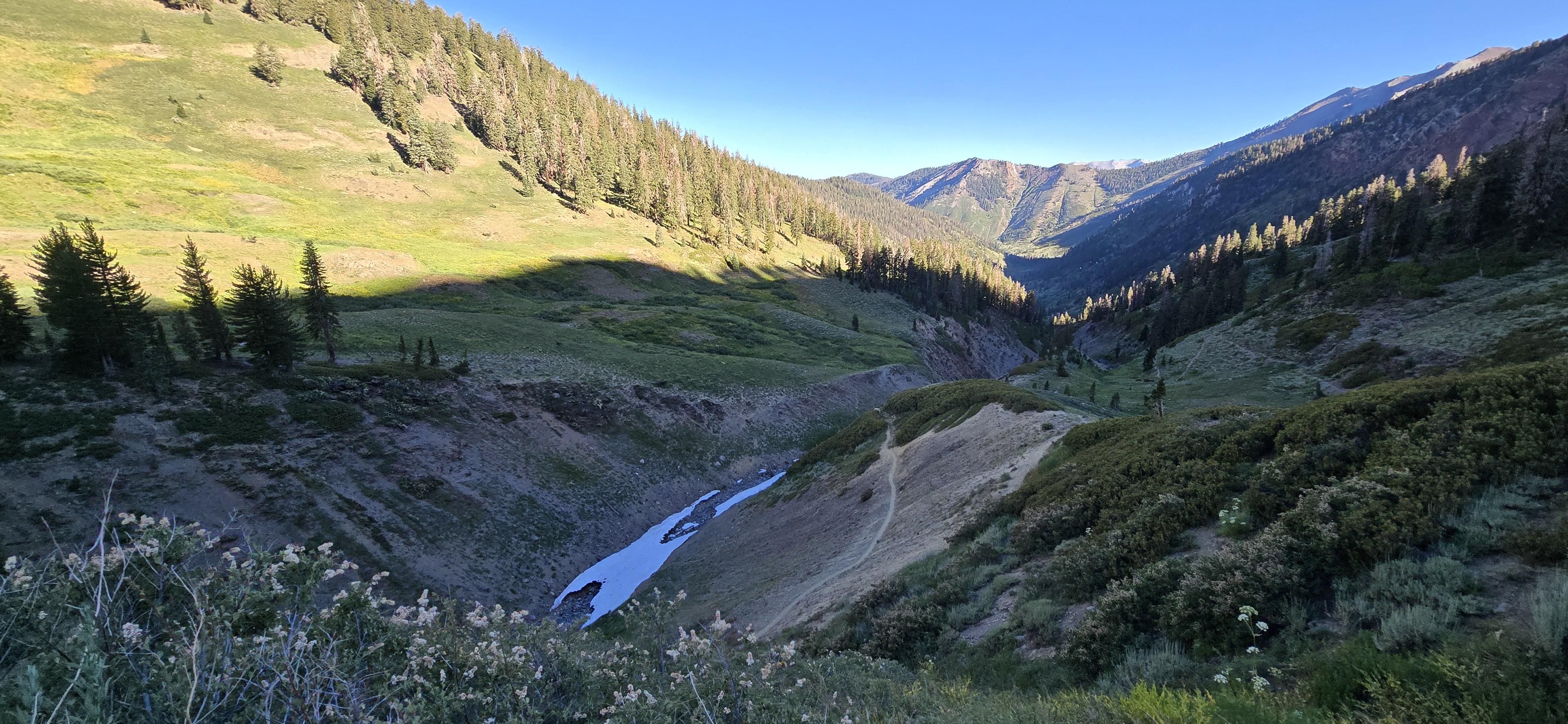 깊은 계곡에는 잔설이 남아 있고