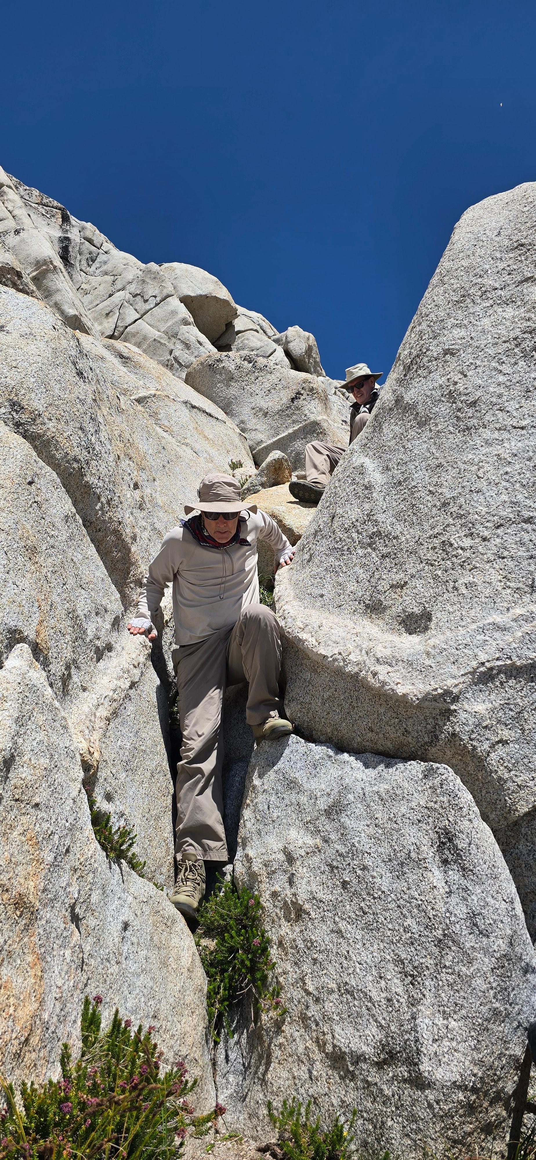 왼쪽의 바위를 아찔하게 타고 내리느라