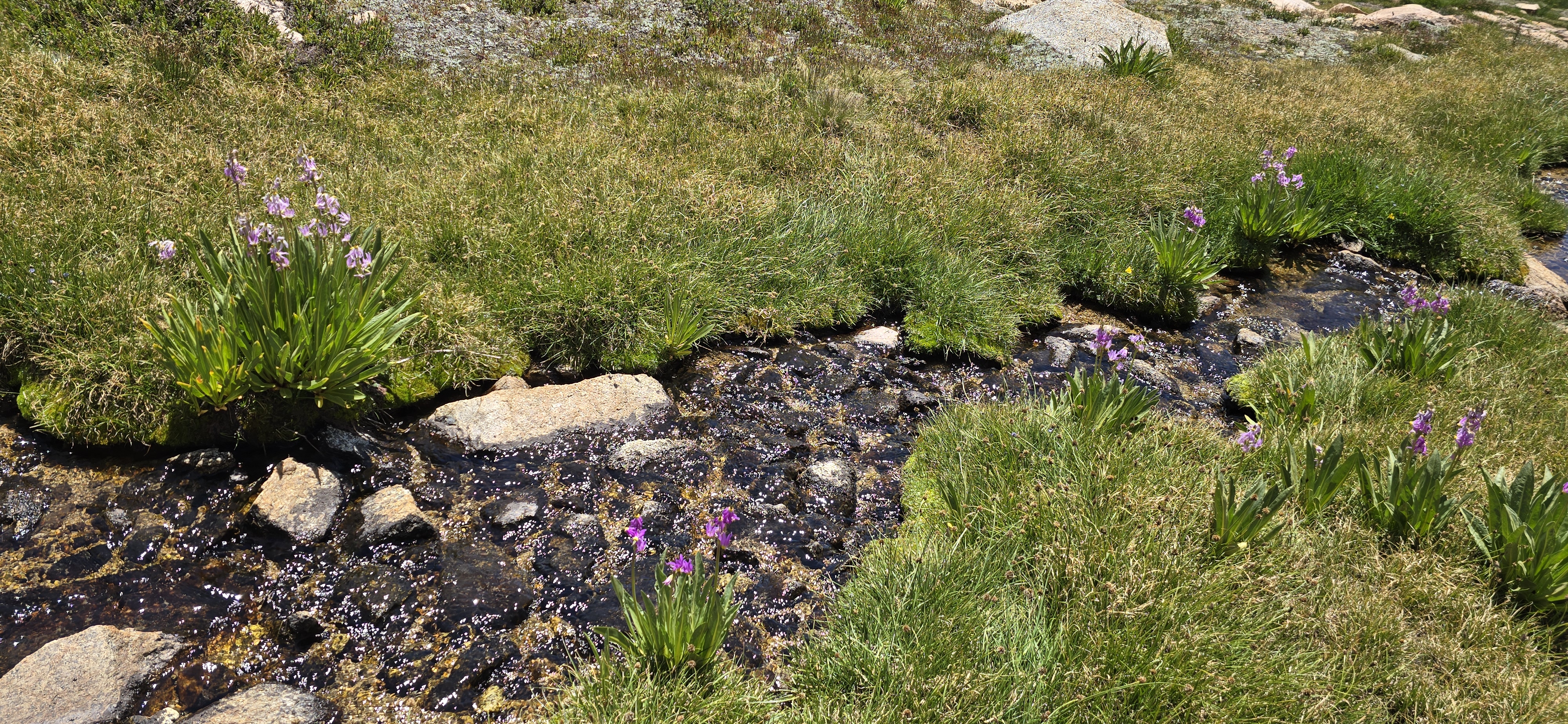 풀과 물길을 따라 내려갑니다.
