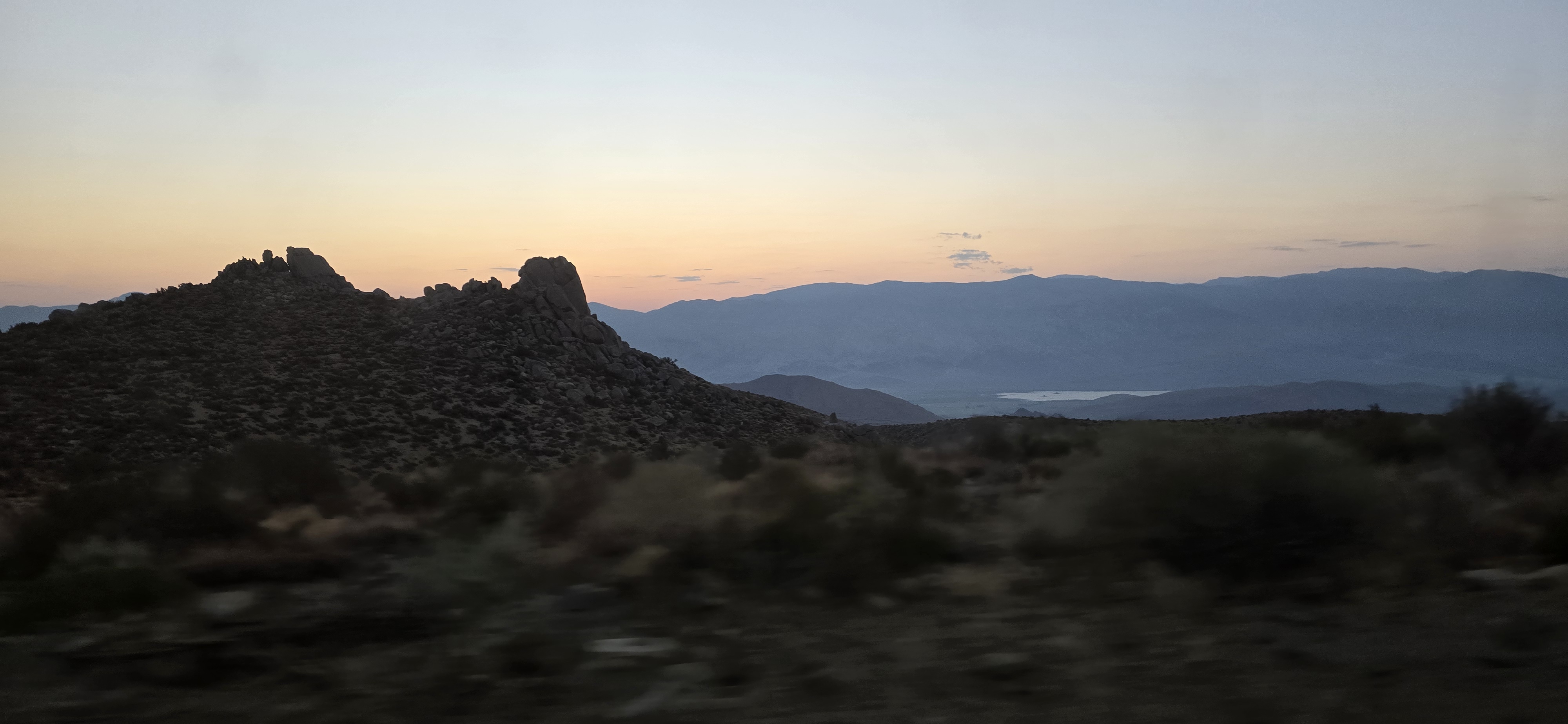 이동하는 도로에서 여명이 보입니다.