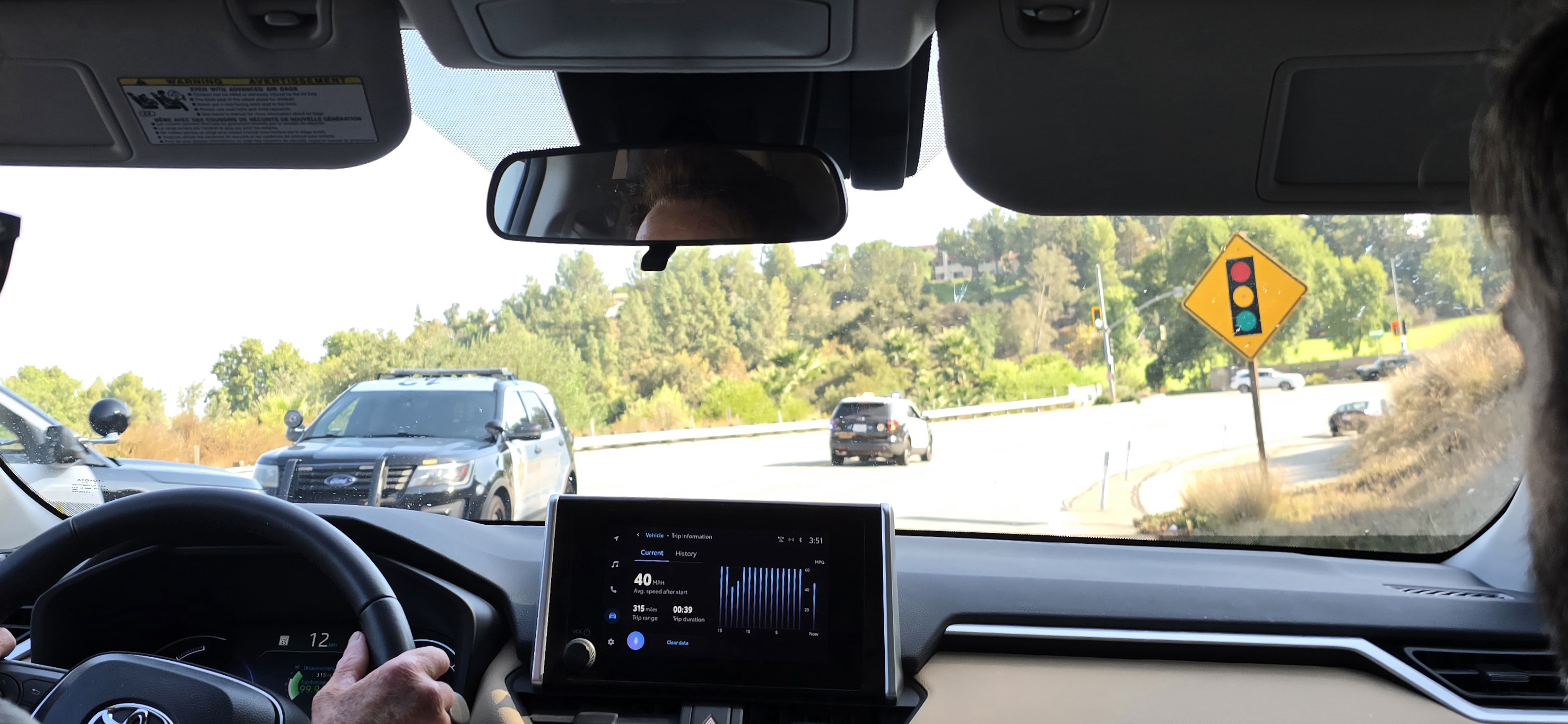 주의하고 과속하는 차량이 내 자동차 뒤로 보이면