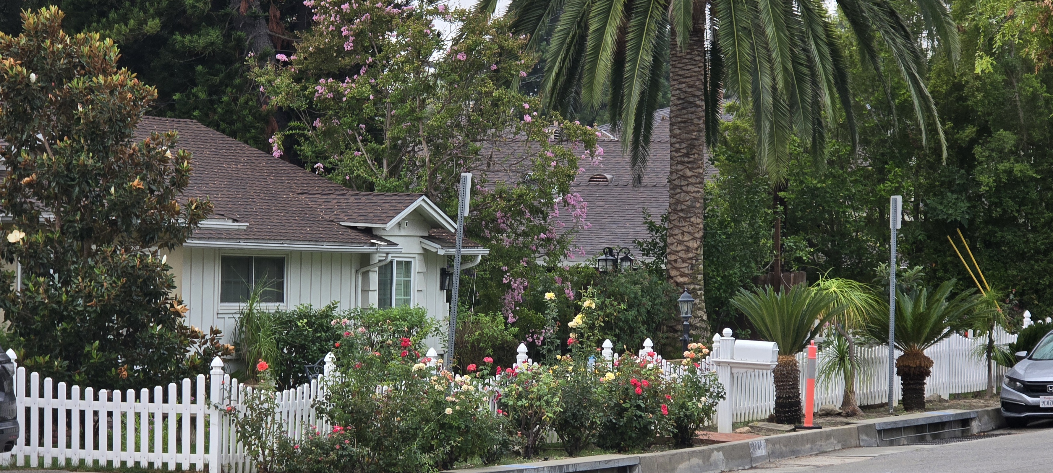 흰색 울타리에 화려한 형형색색의