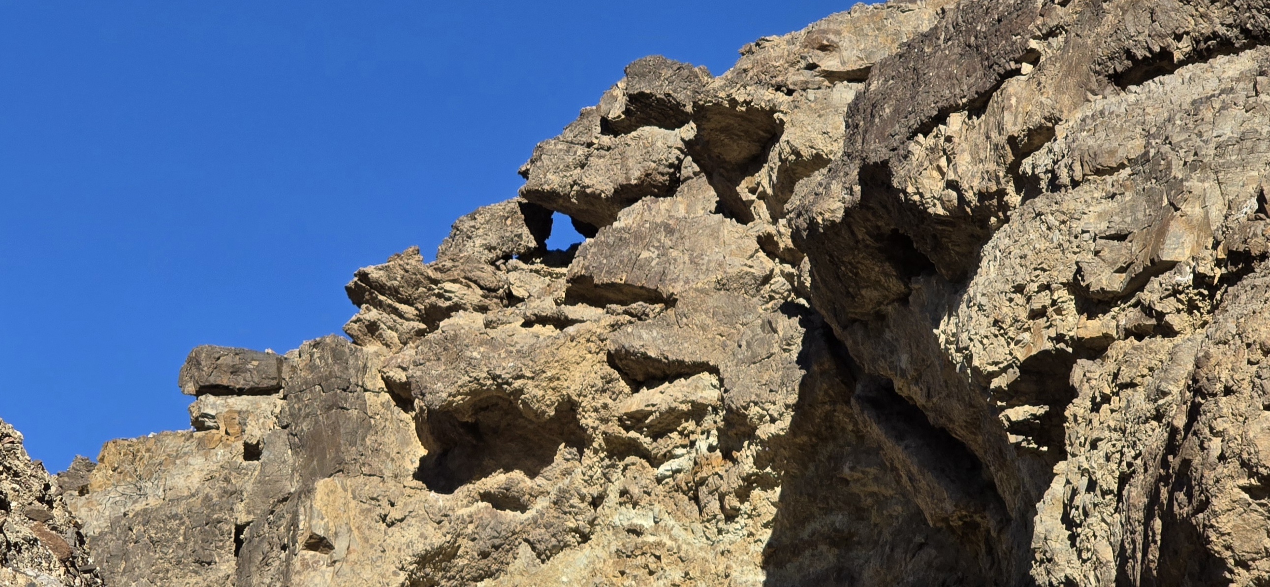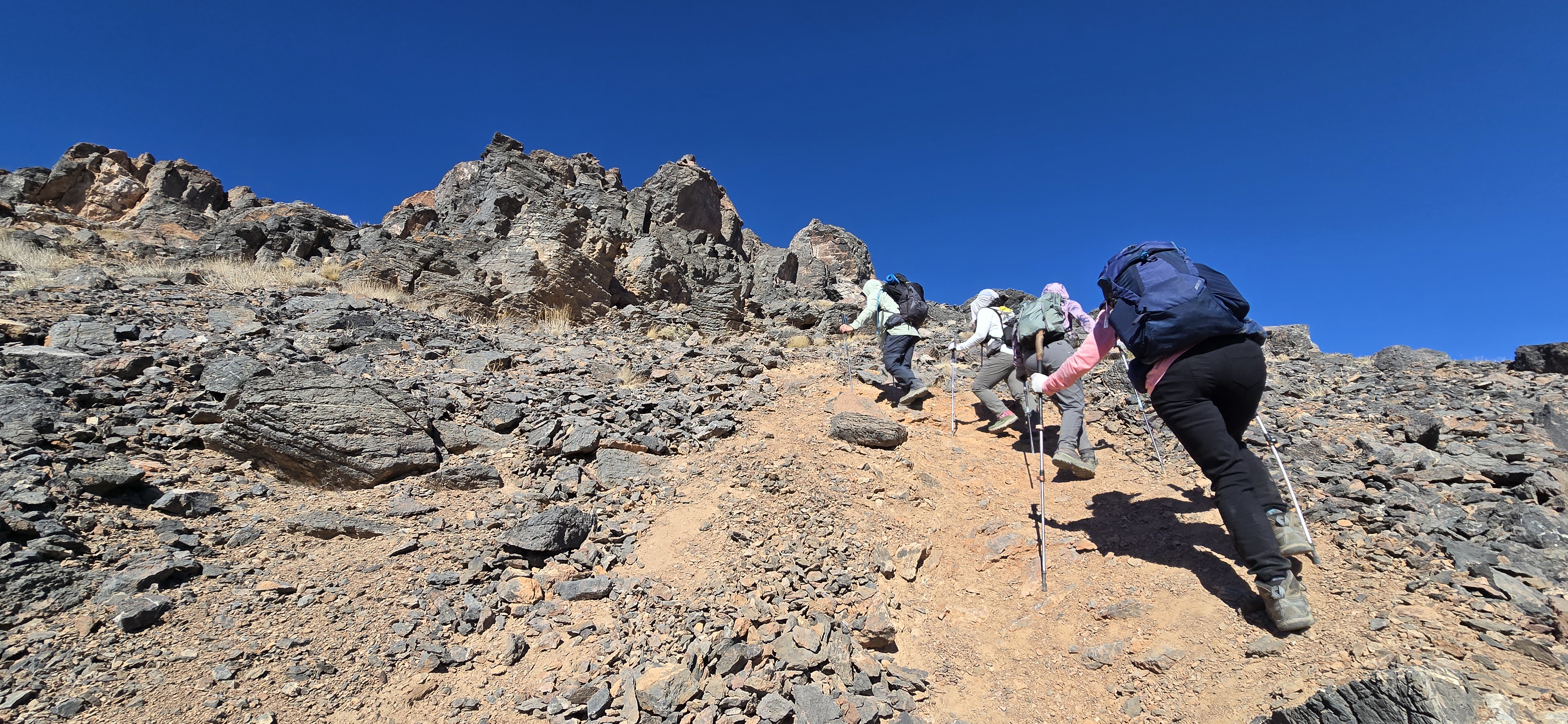 사막산의 바위는 몹시 날카롭고 또 일부는
