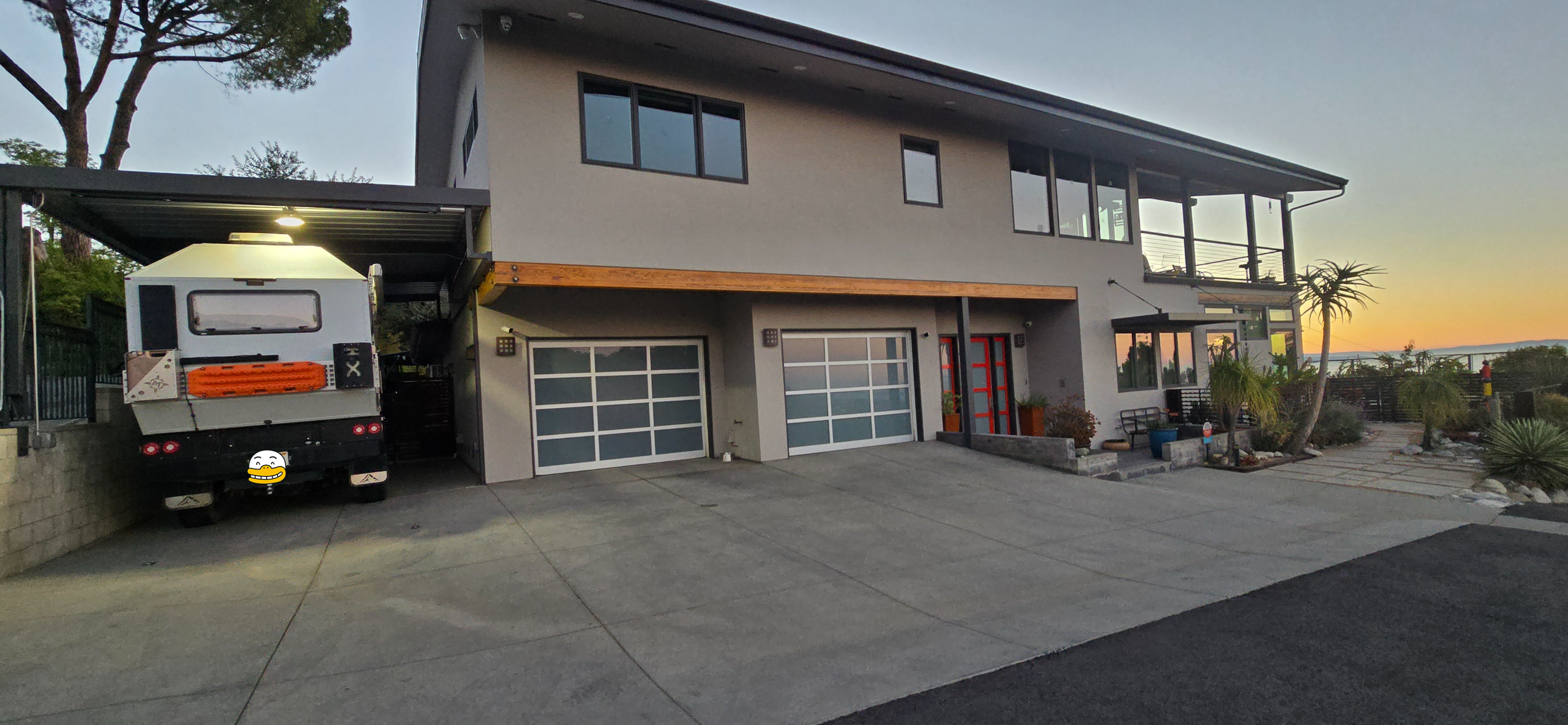 왼쪽에 주차한 RV 자동차를 보니 이 집
