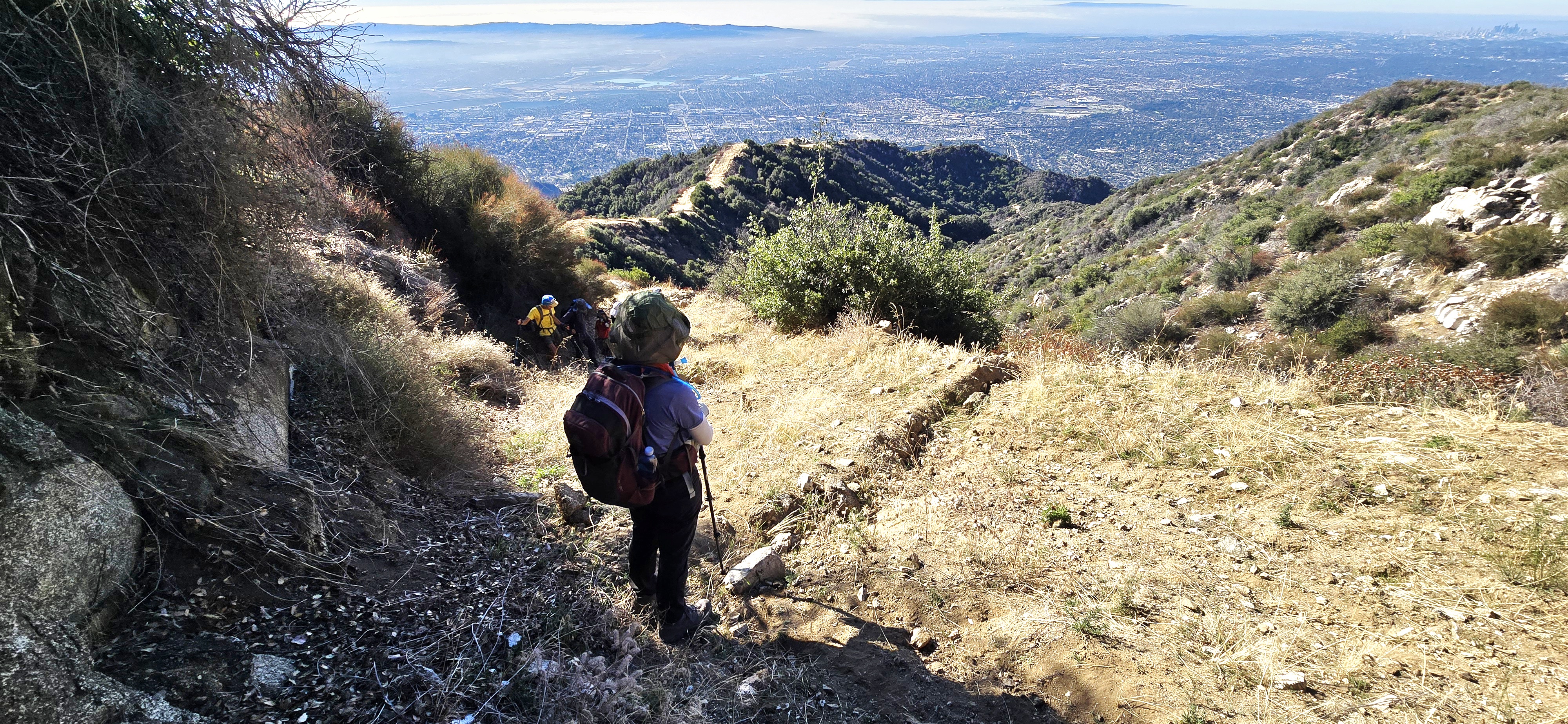 소방도로를 4 마일 더 긴 거리를 걸어서 하산했습니다.