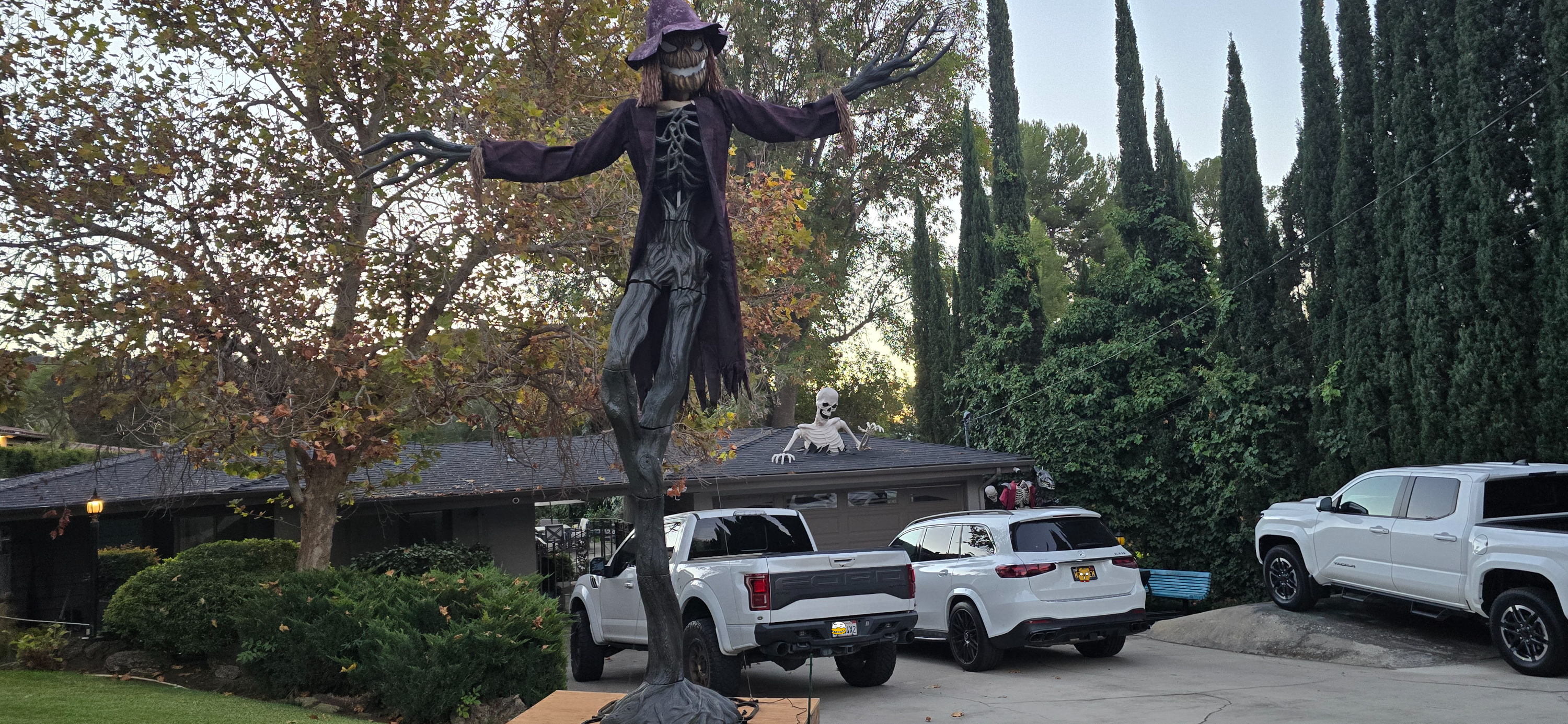 할로윈 장식이 문설주처럼 서 있는데