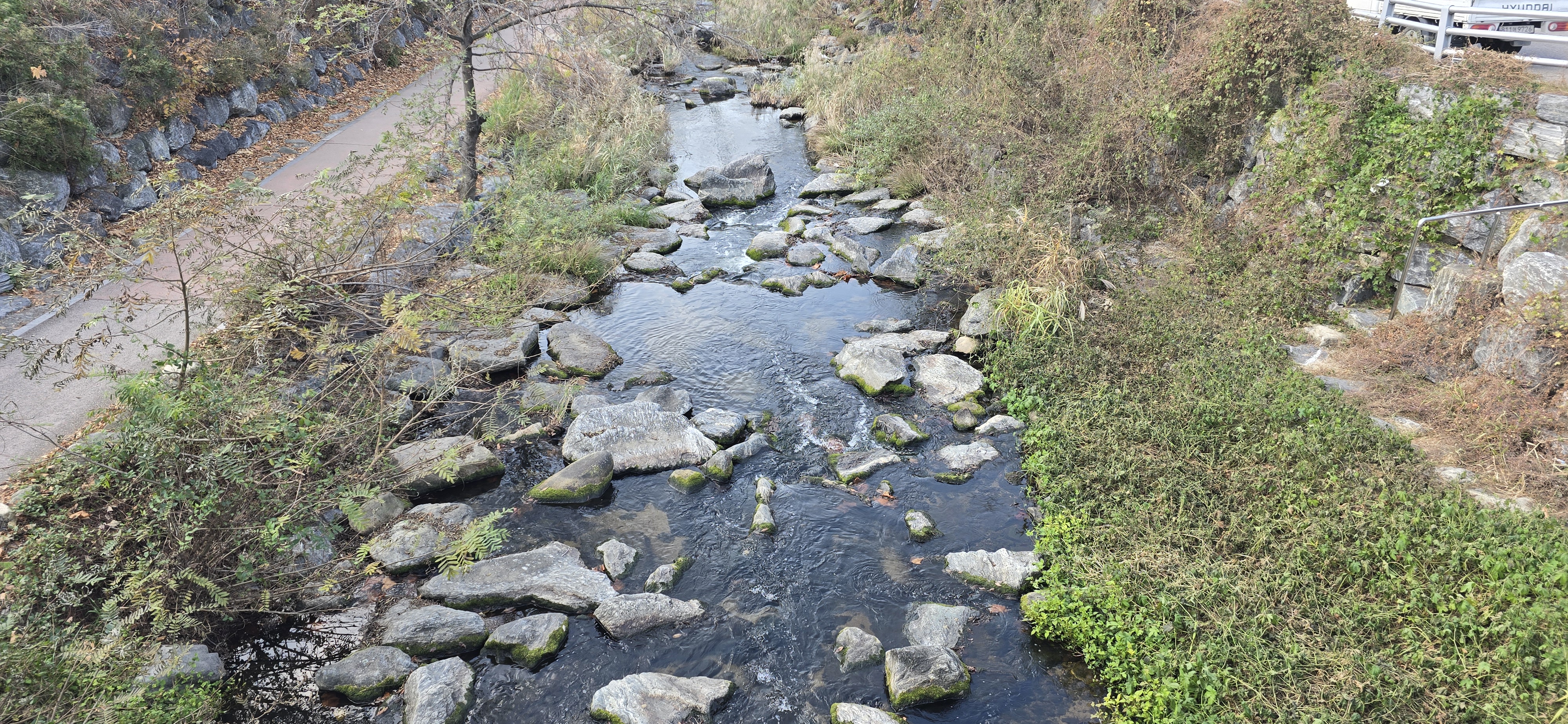 계곡을 따라 내려갑니다.