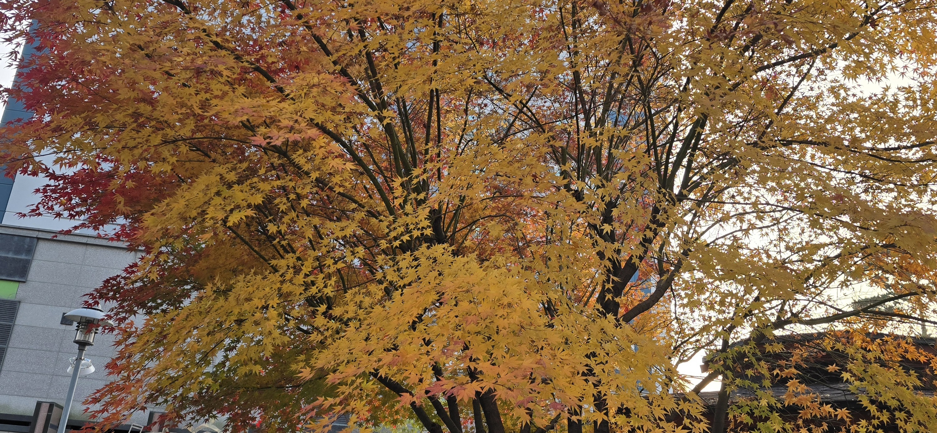 주황색의 단풍이 고목에 피었습니다.