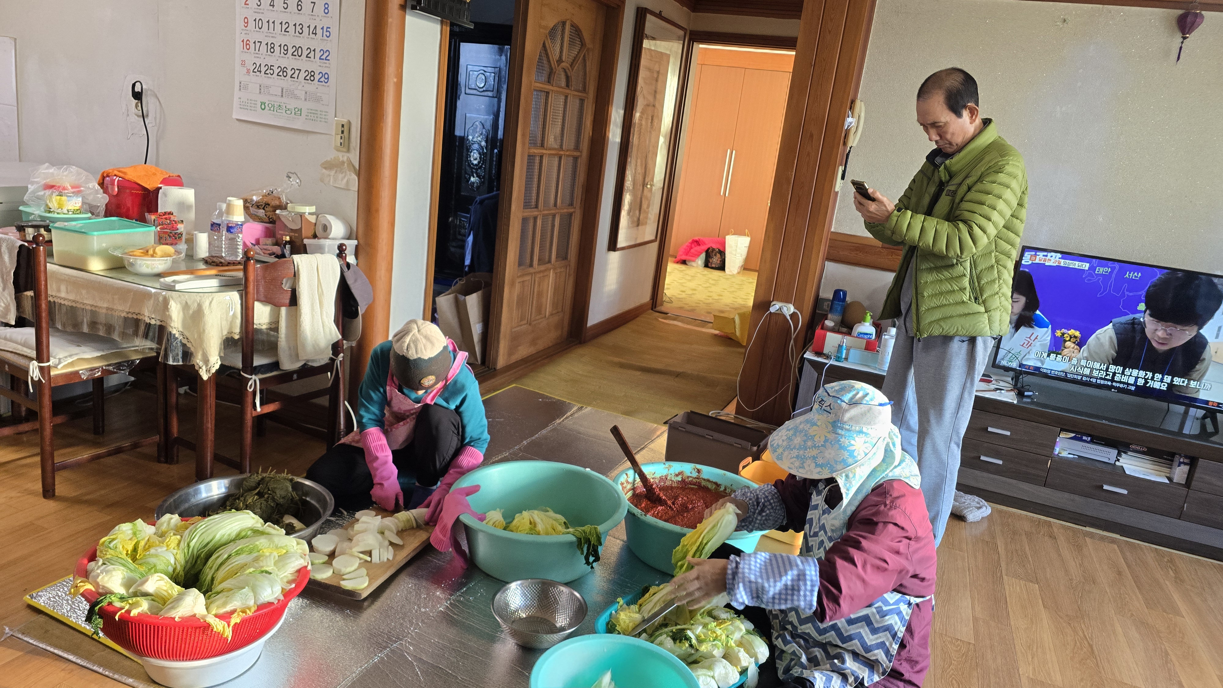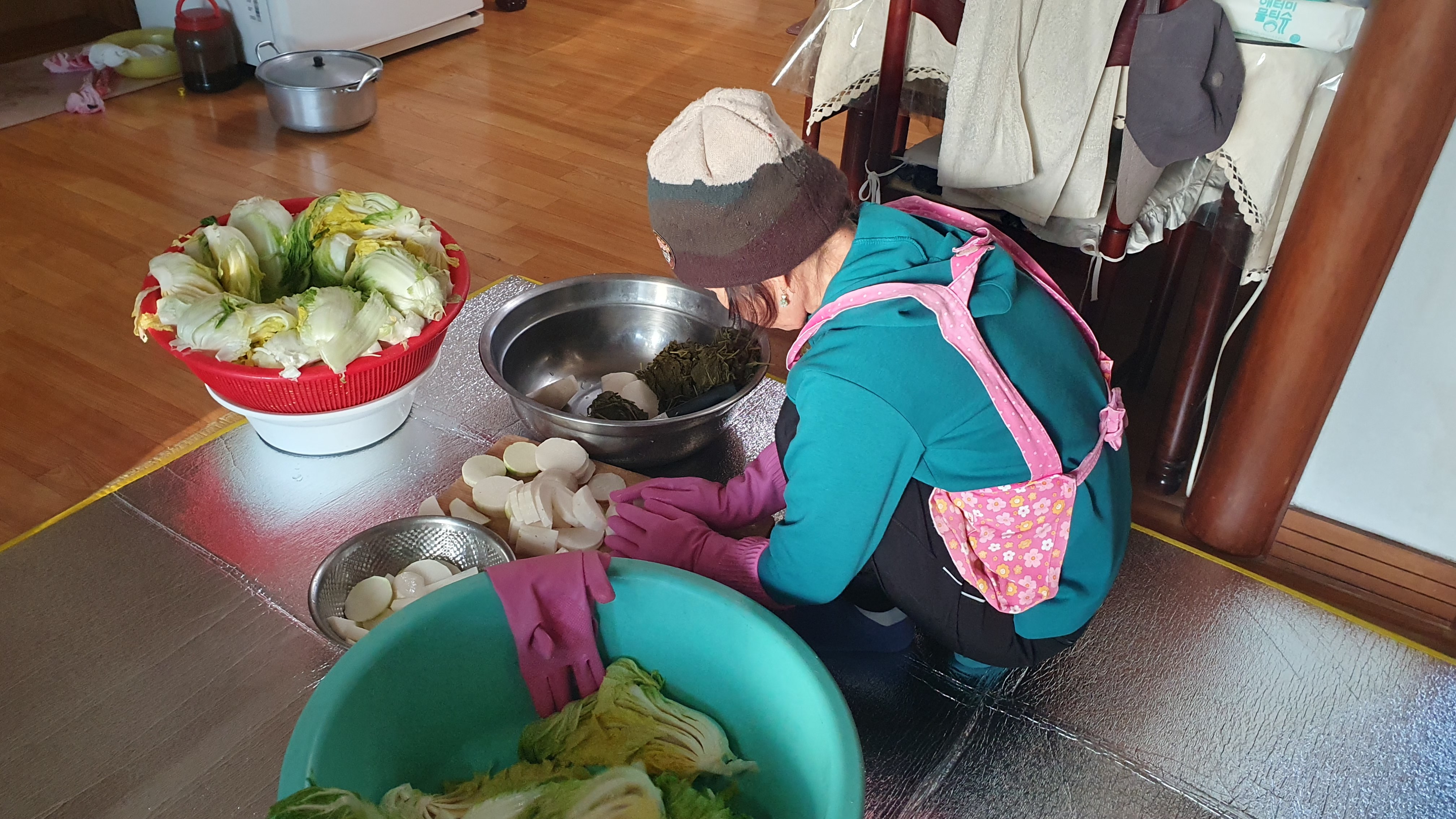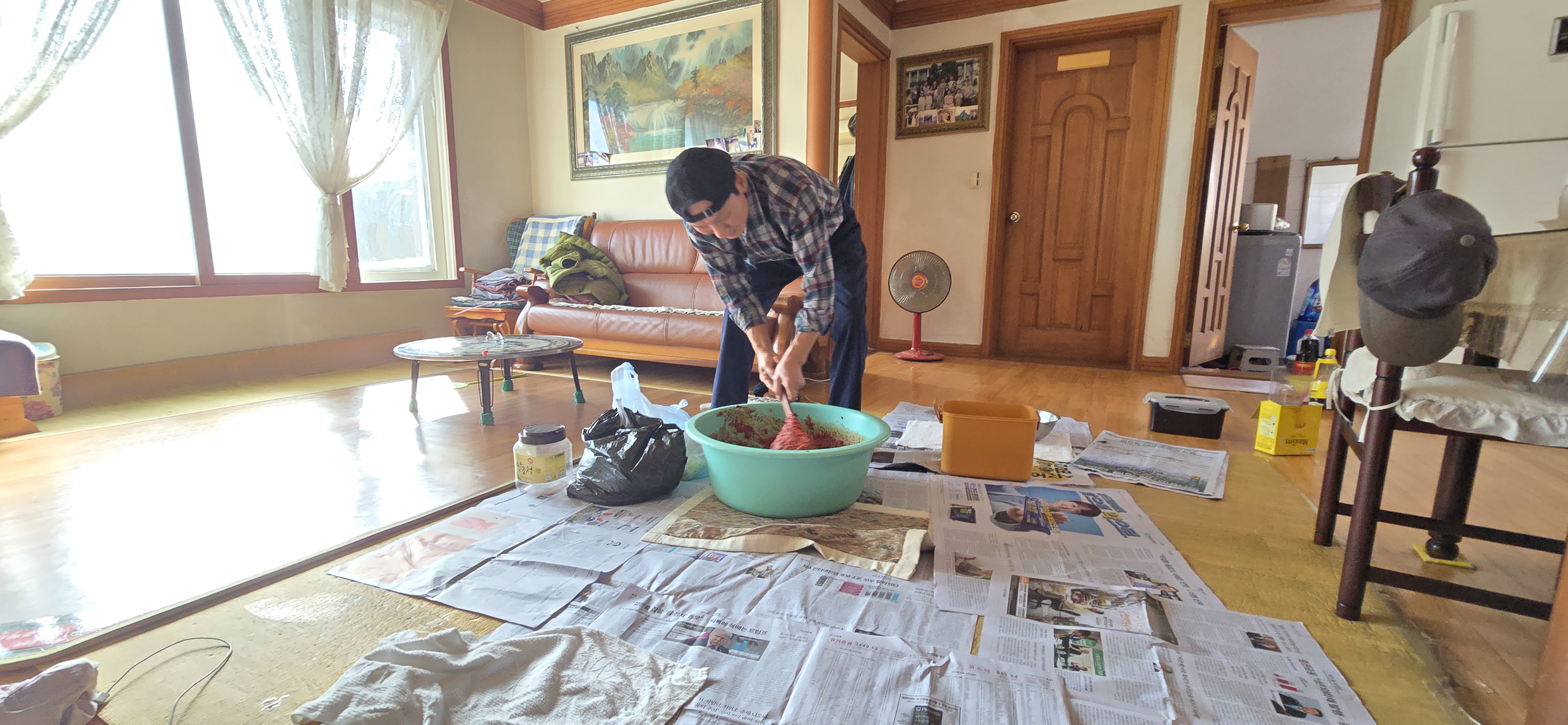 처음으로 거실에서 김장을