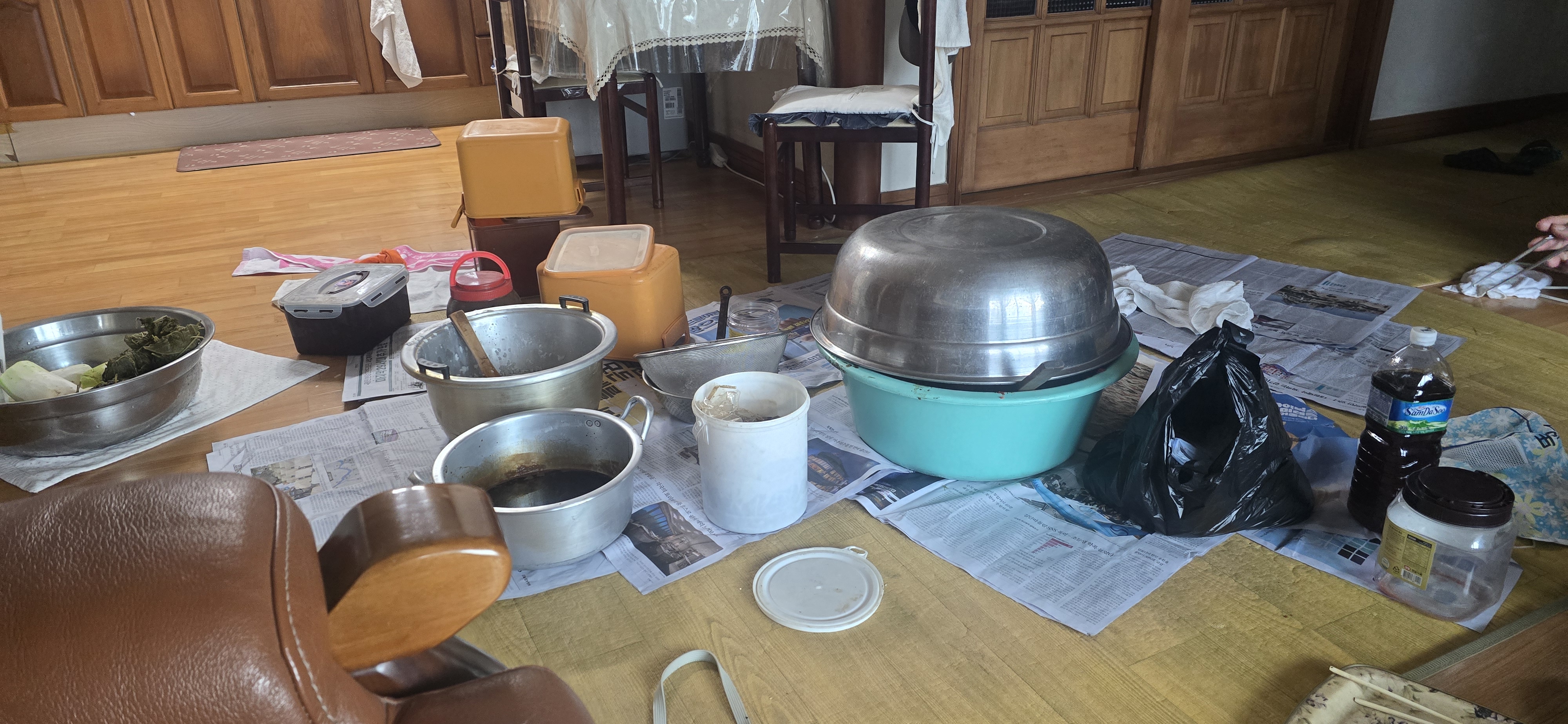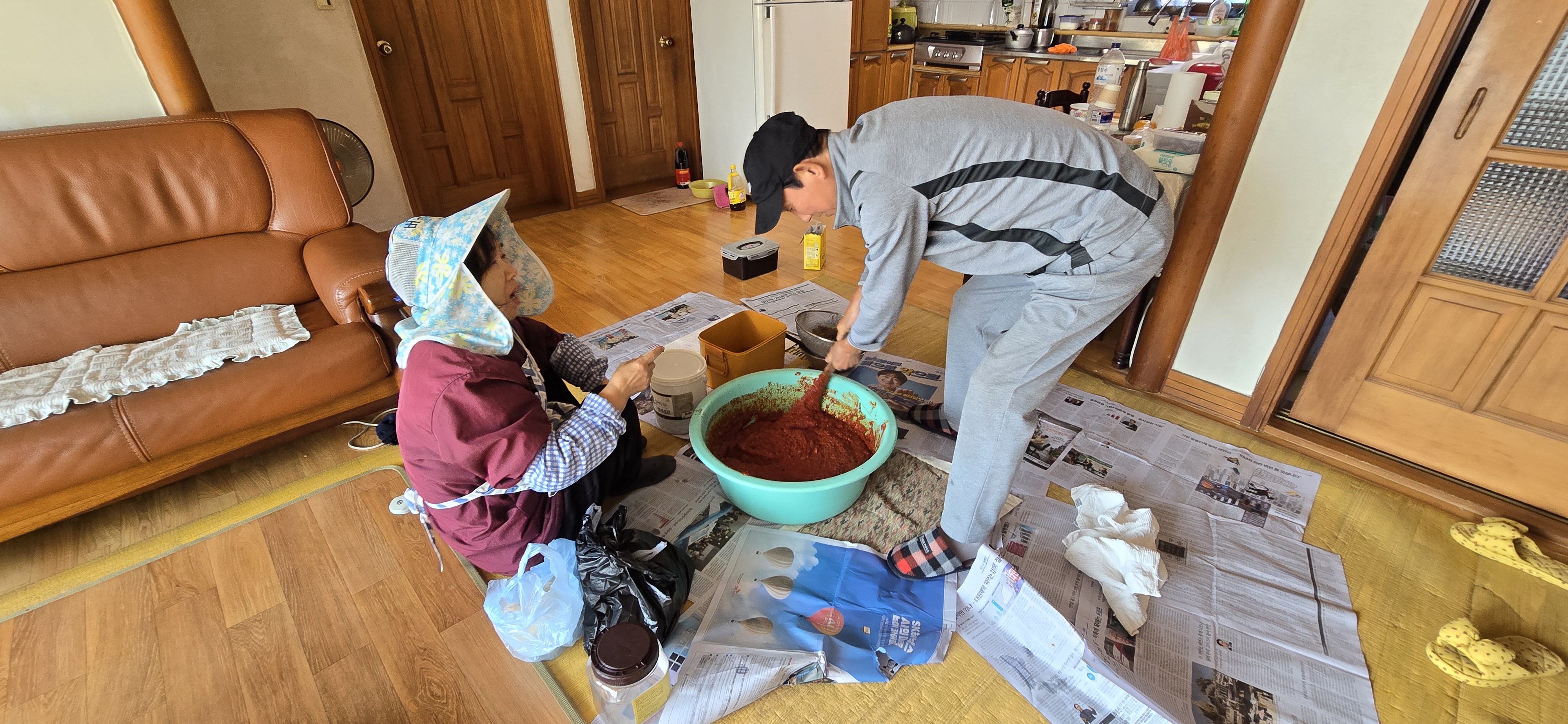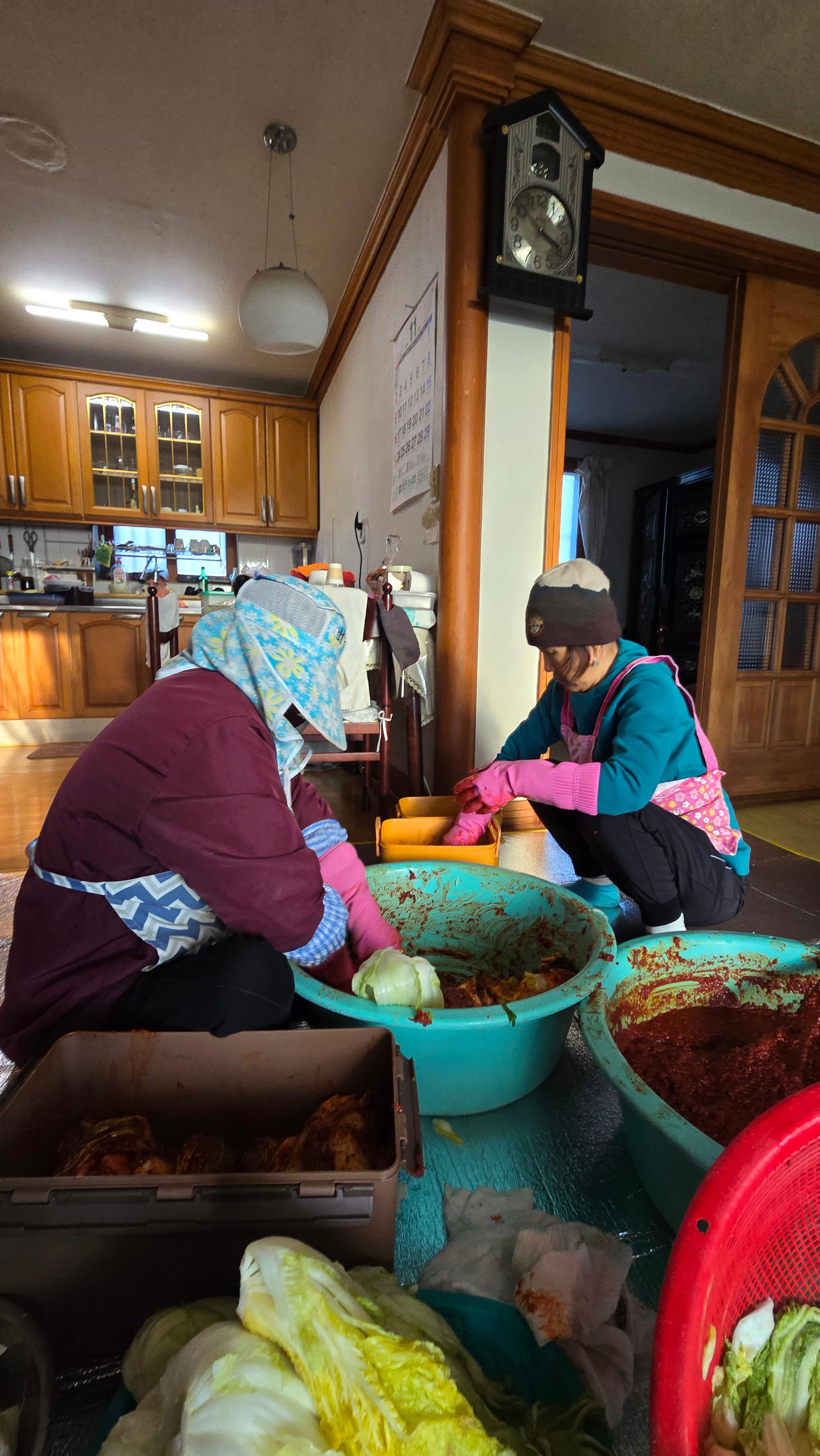 처음으로 거실에서 김장을