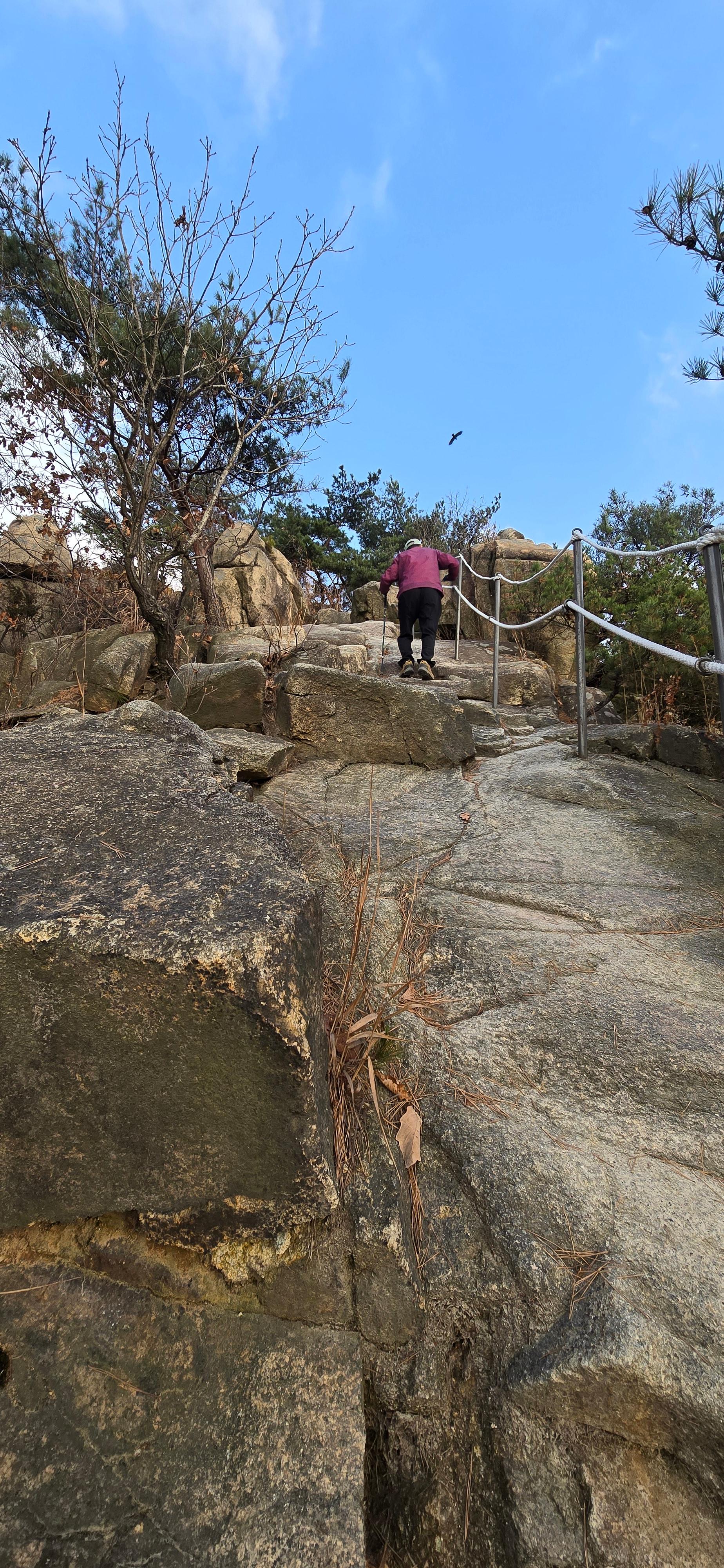 바위를 타고 오르면 바위를 지나