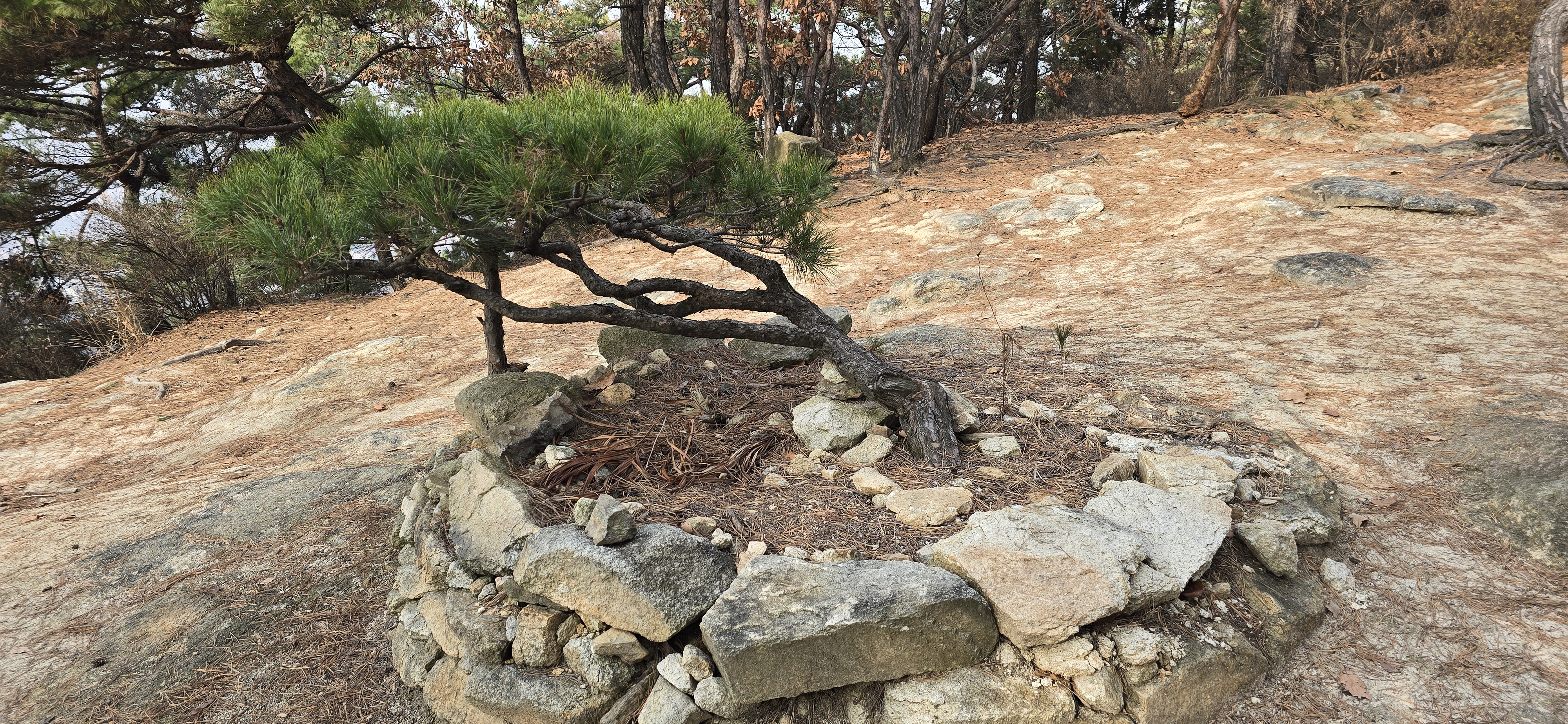 오른쪽에 스스로 분재로 자란 소나무를