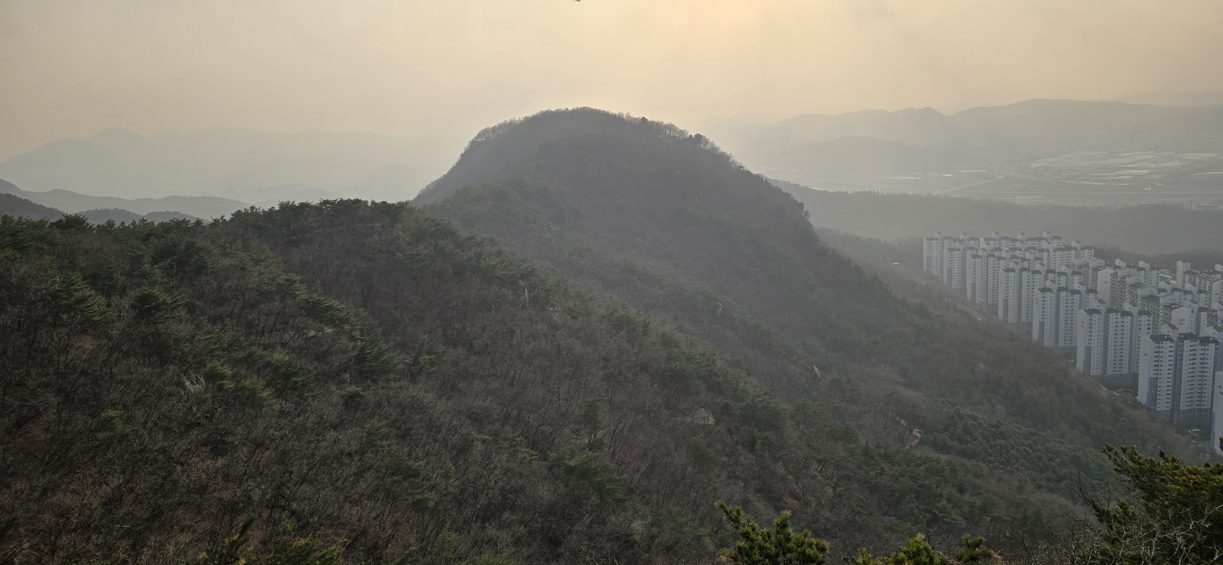 한국의 산은 도심과 함께 있습니다.