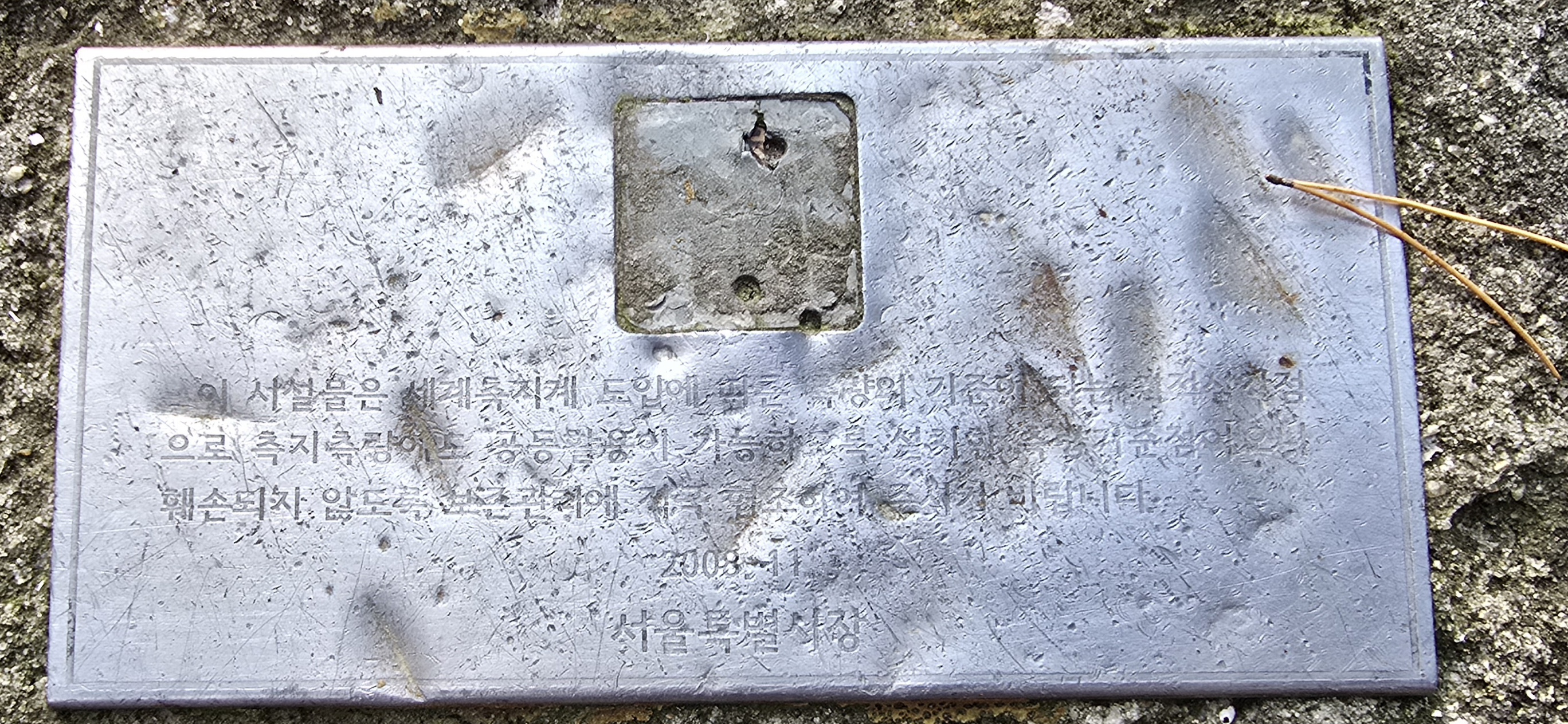 이정표에 재미있는 바위가