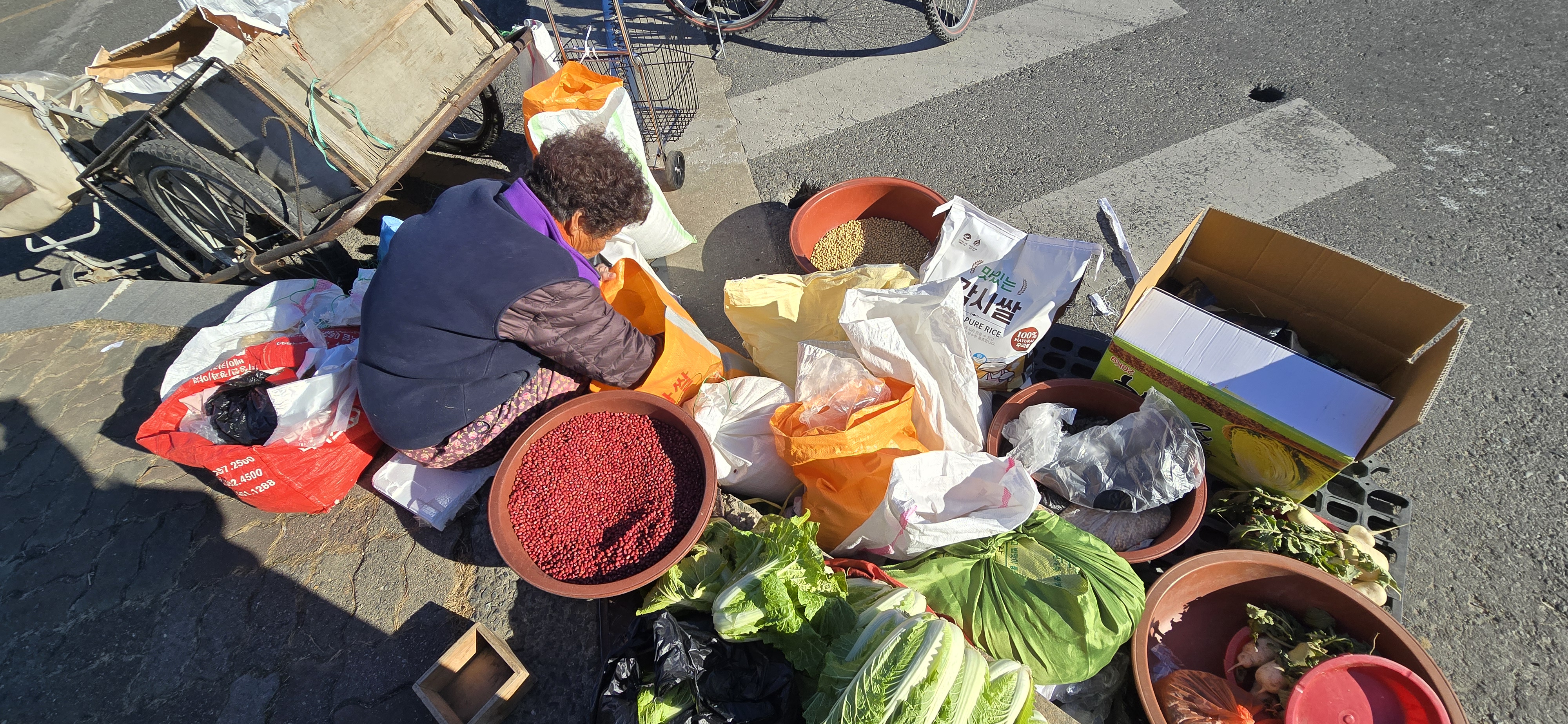 제법 쌀쌀한 날씨에도 노점에 앉으신