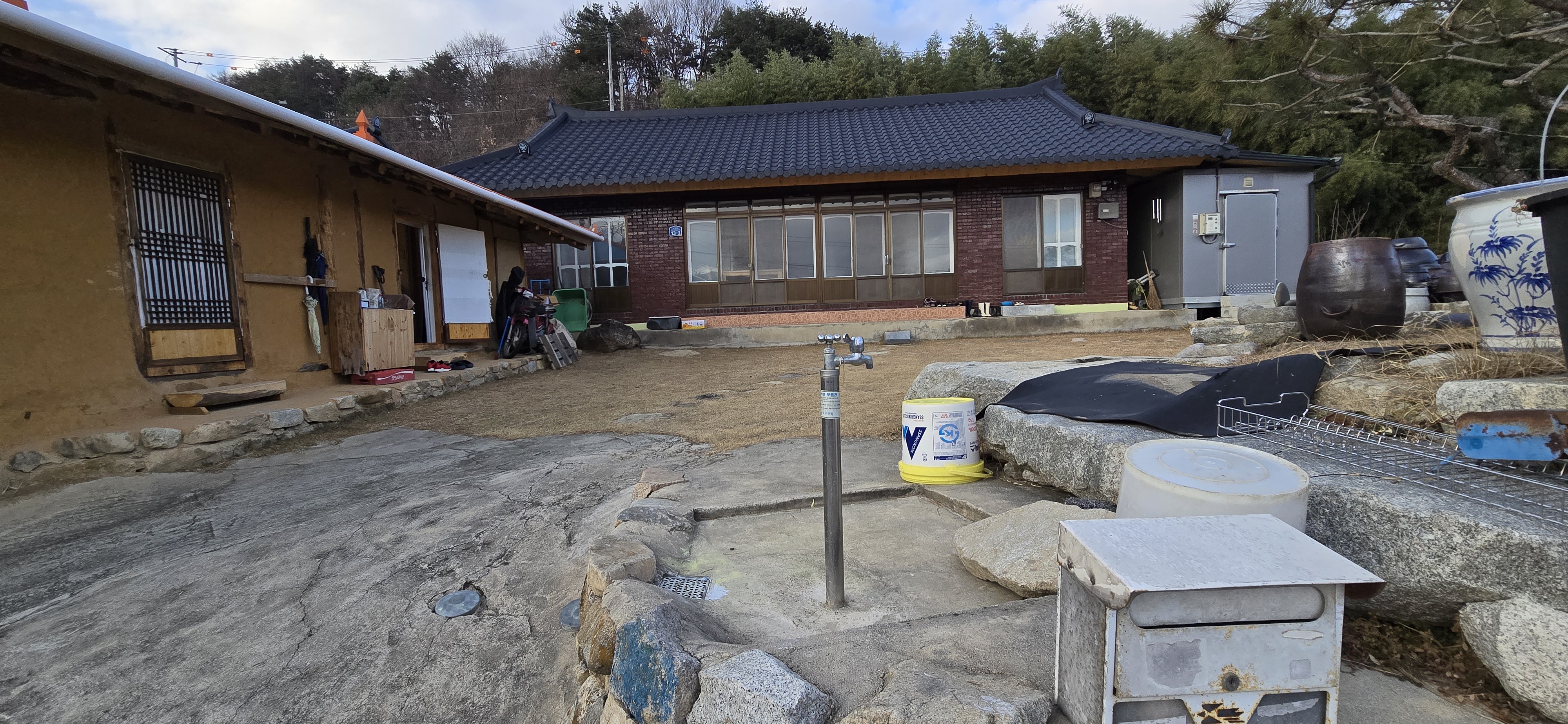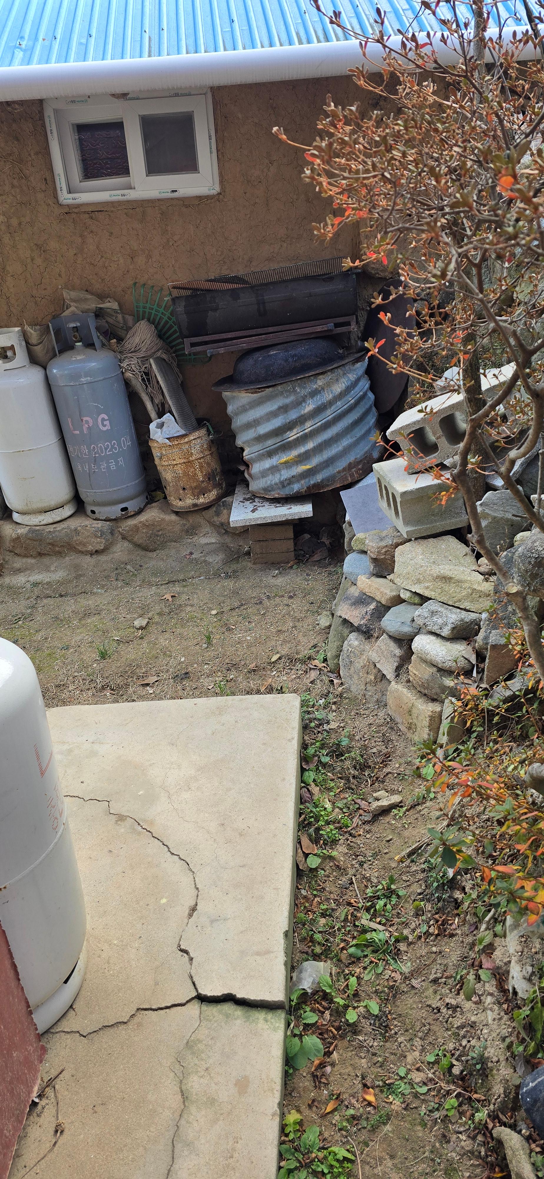 물품들이고 뒤뜰의 돌담도