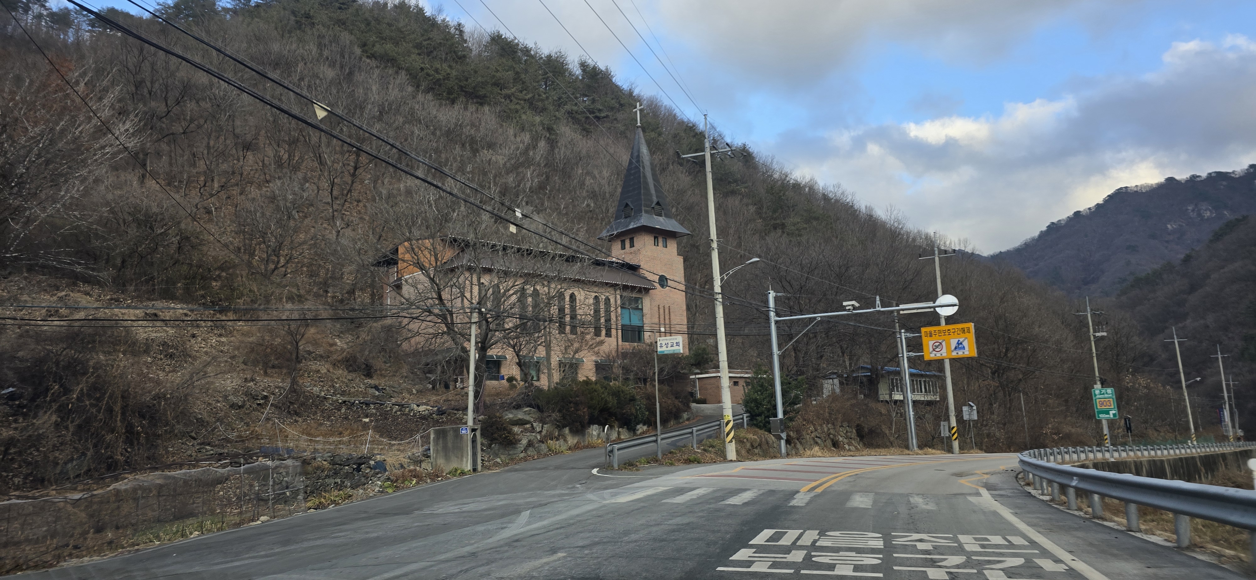 산골마을은 집이 비탈진 곳에 있어