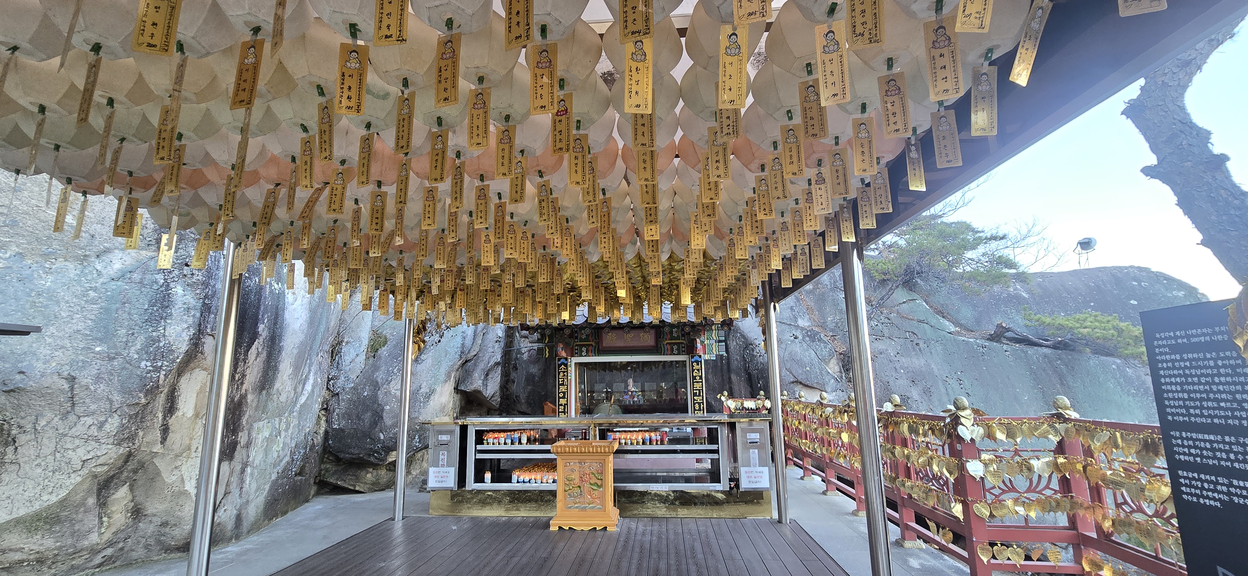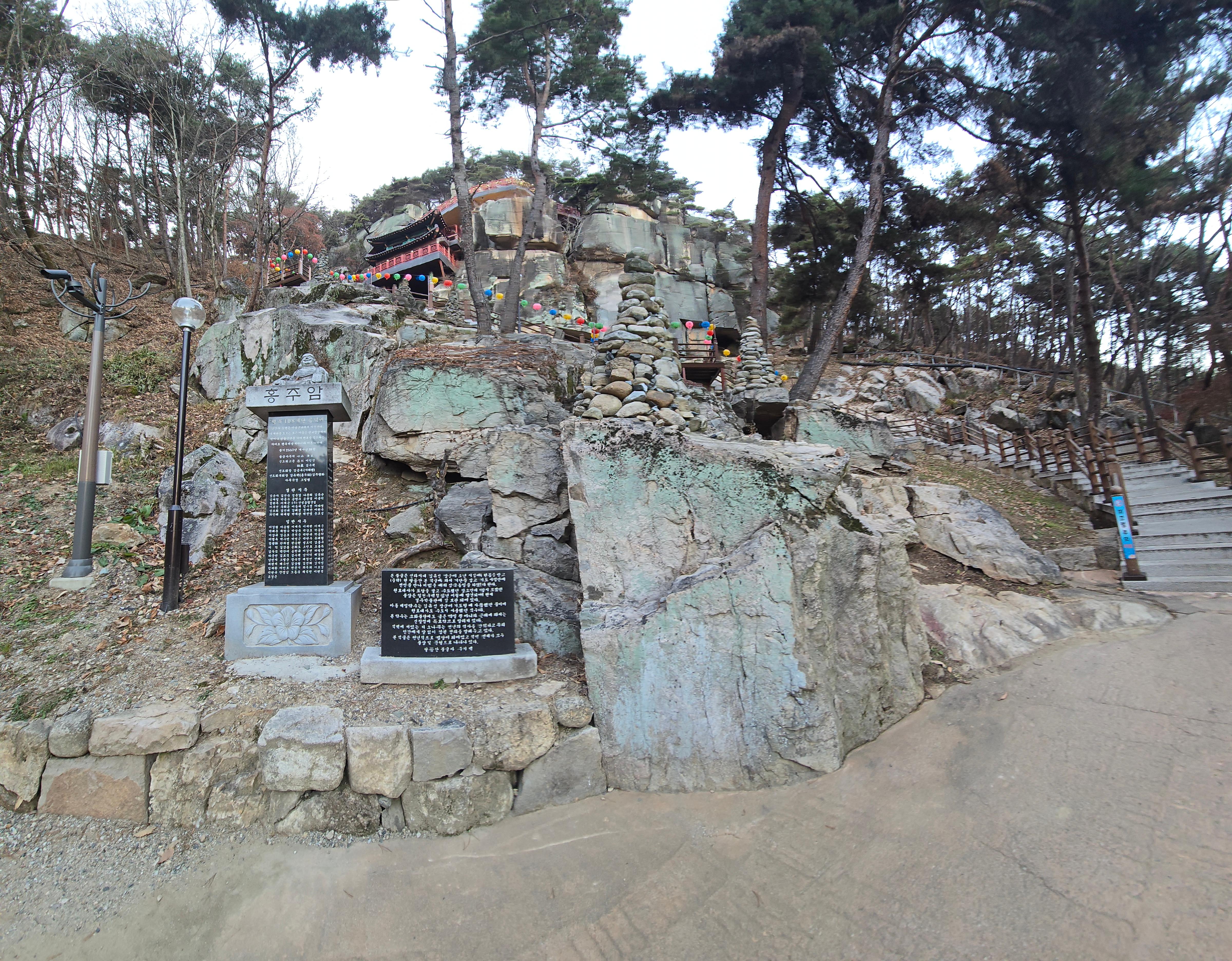 바위 위에 지어진 홍주암으로