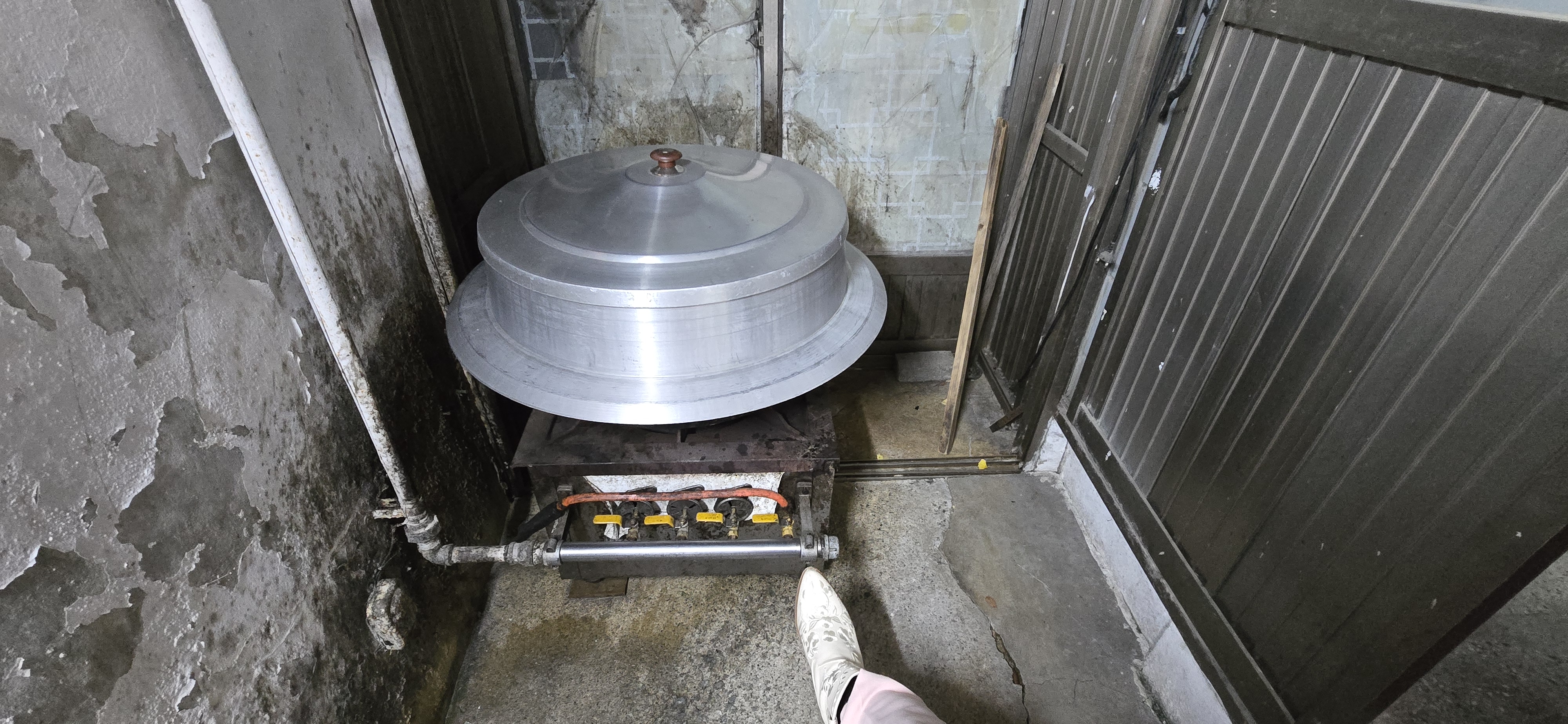식당 뒤켠에 거대한 솥단지도