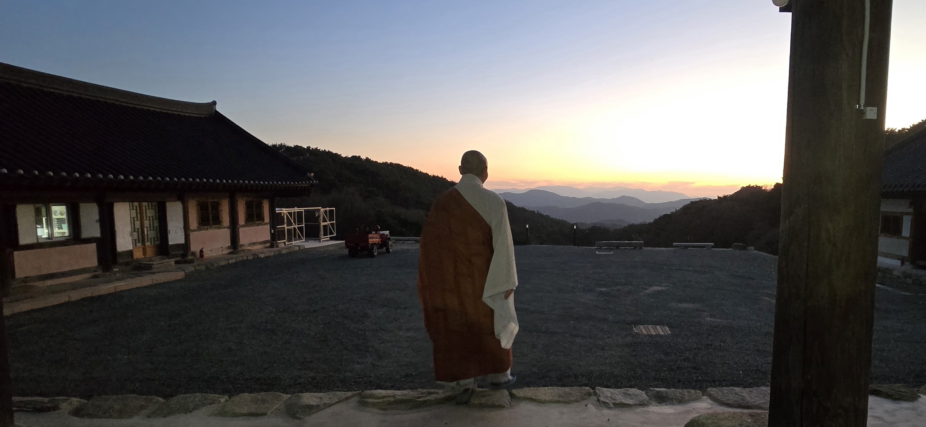 스님은 의연하게 서서 이 아름다운 풍경을