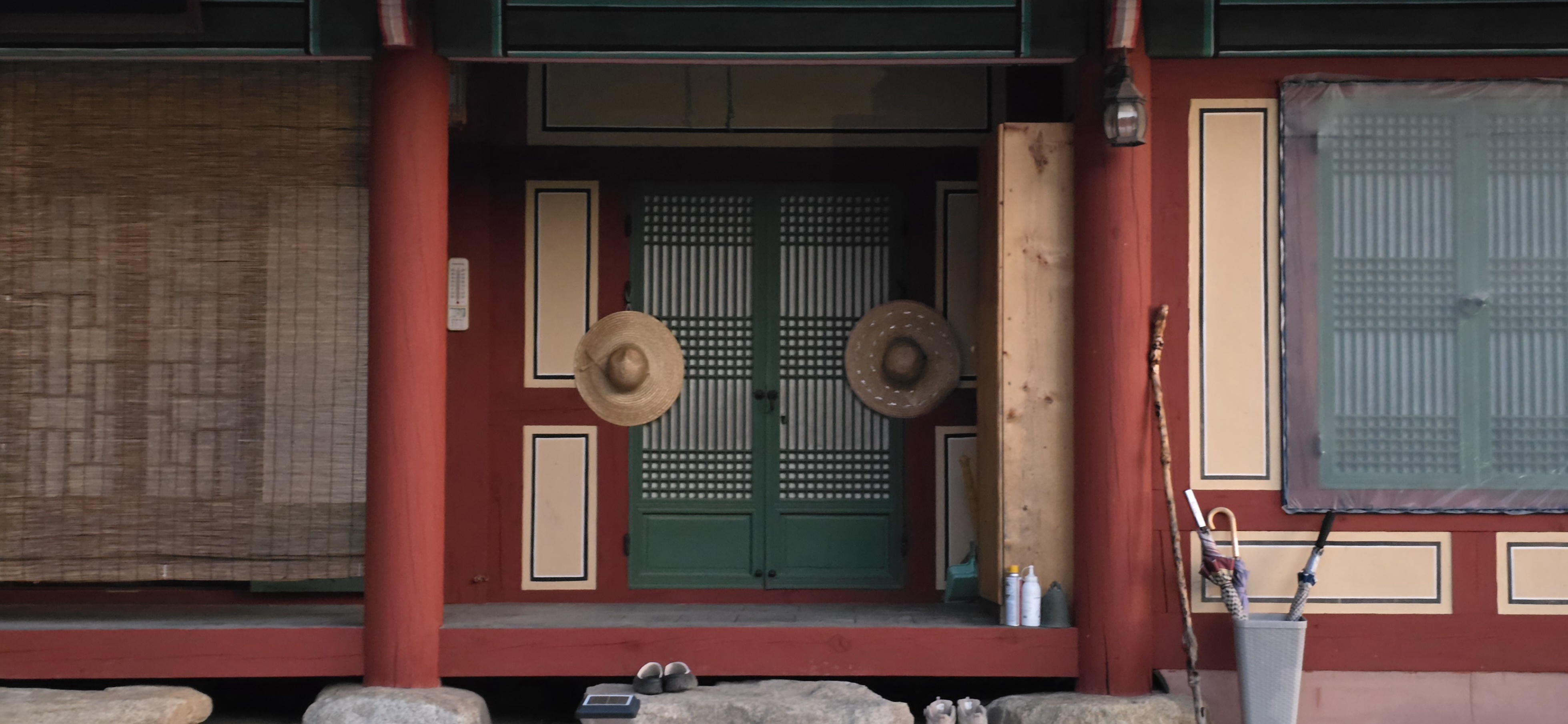 왼쪽의 암자 정면에는 문이 없고