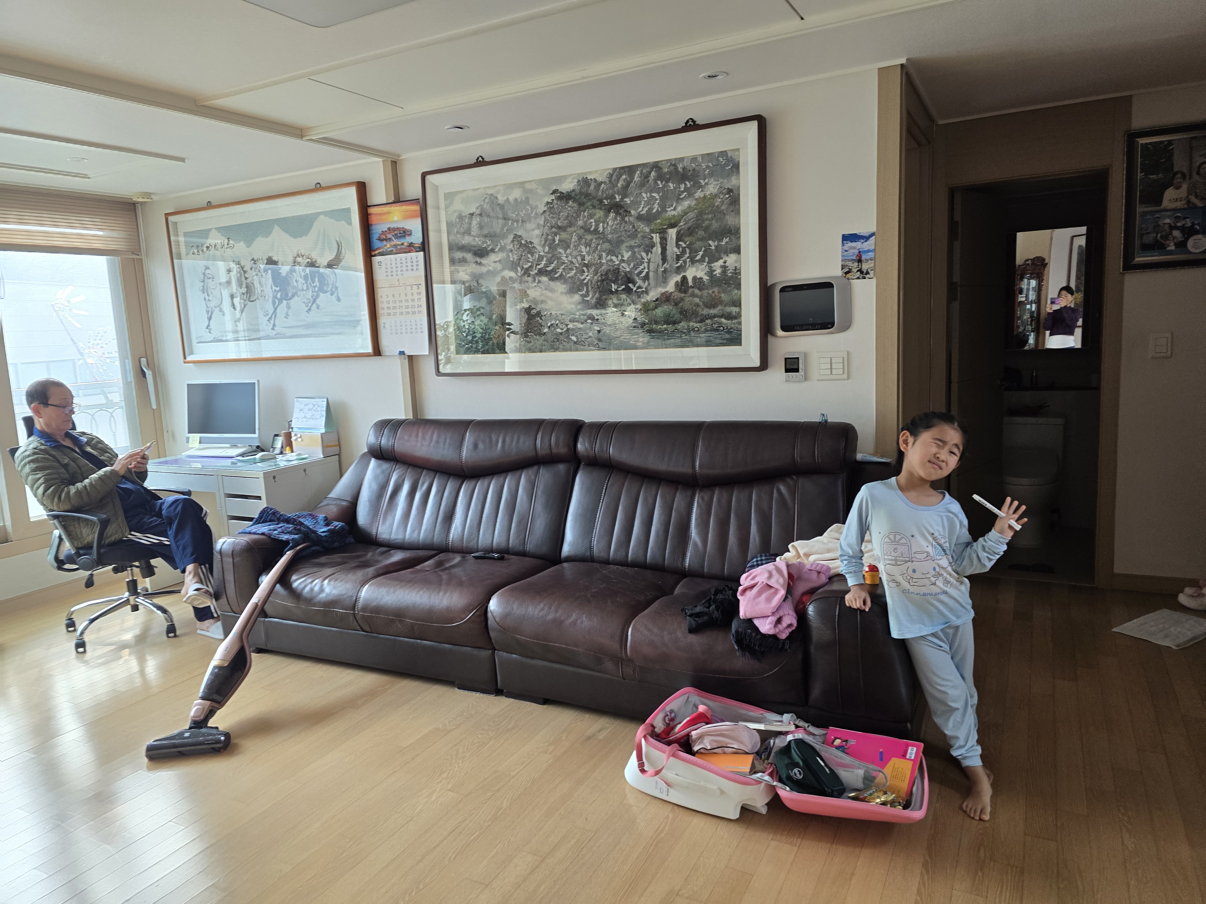 오빠, 사하라 님은 청소기 대기 중입니다.