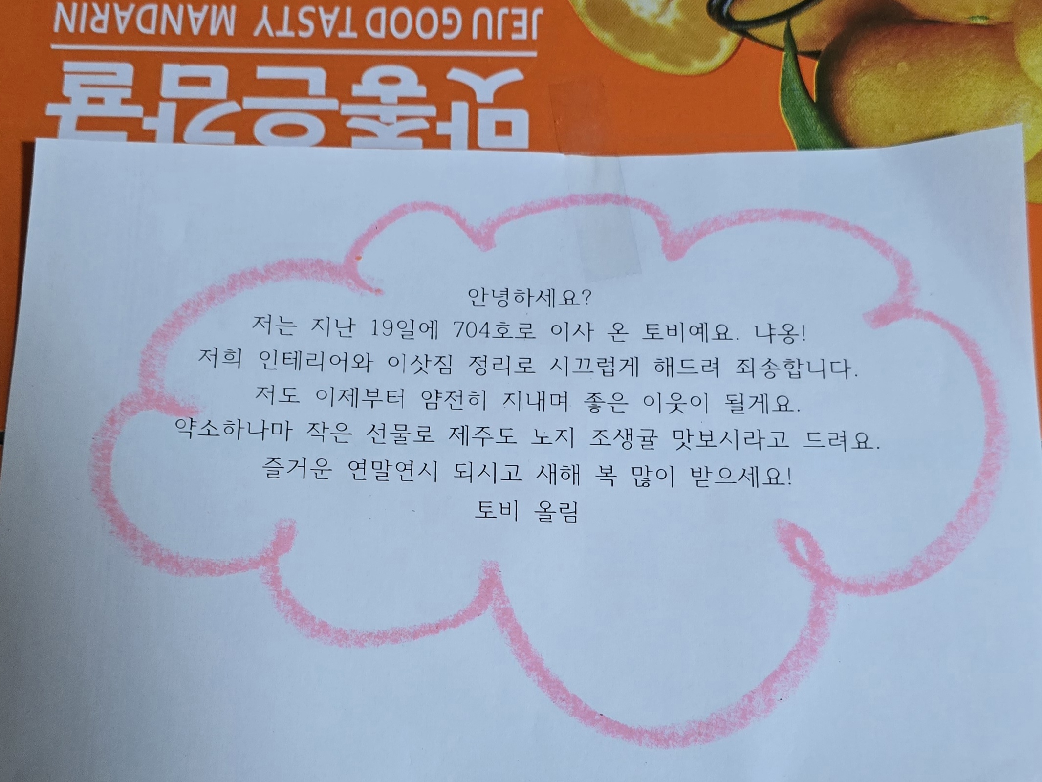 입주 인사로 집 앞에 선물을 놓고
