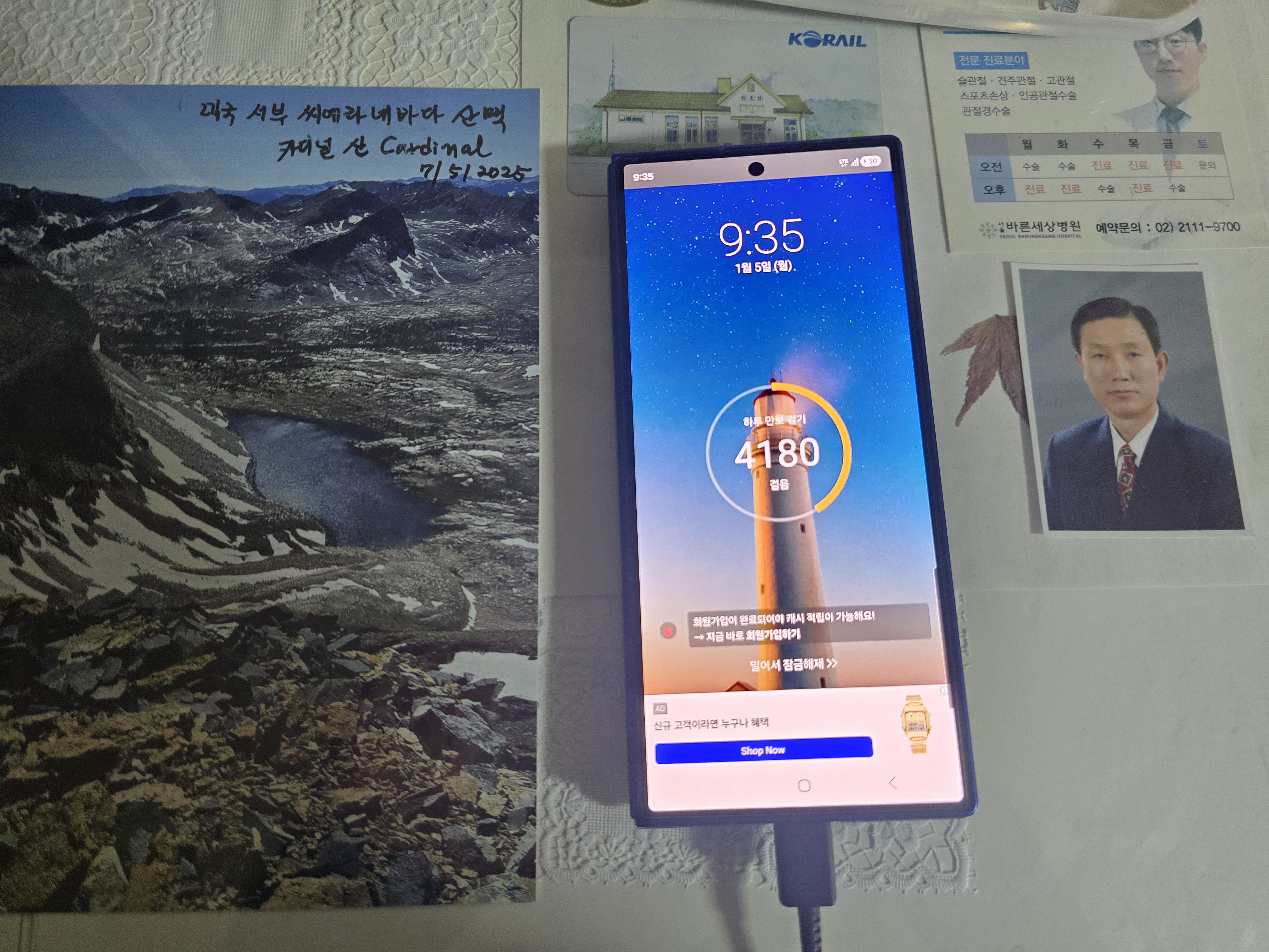 산이름 적으라 하더니 유리에 또 깔았습니다.