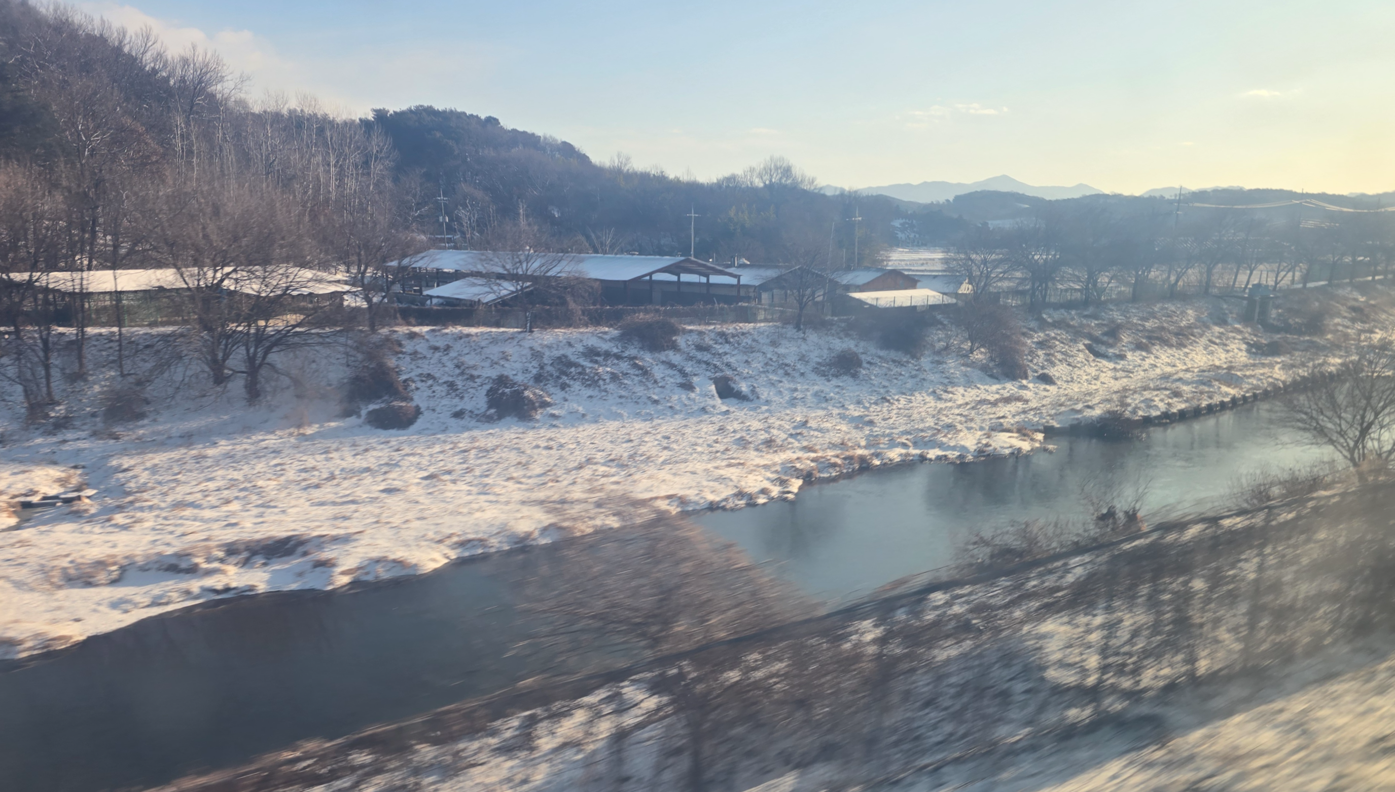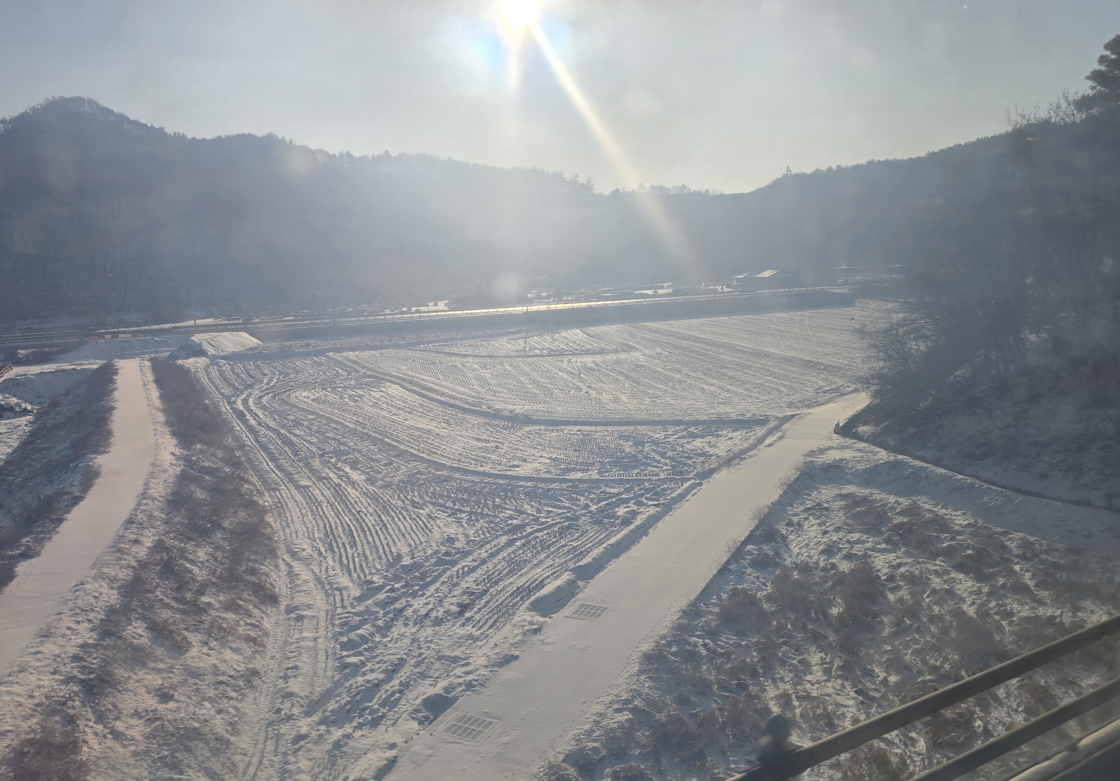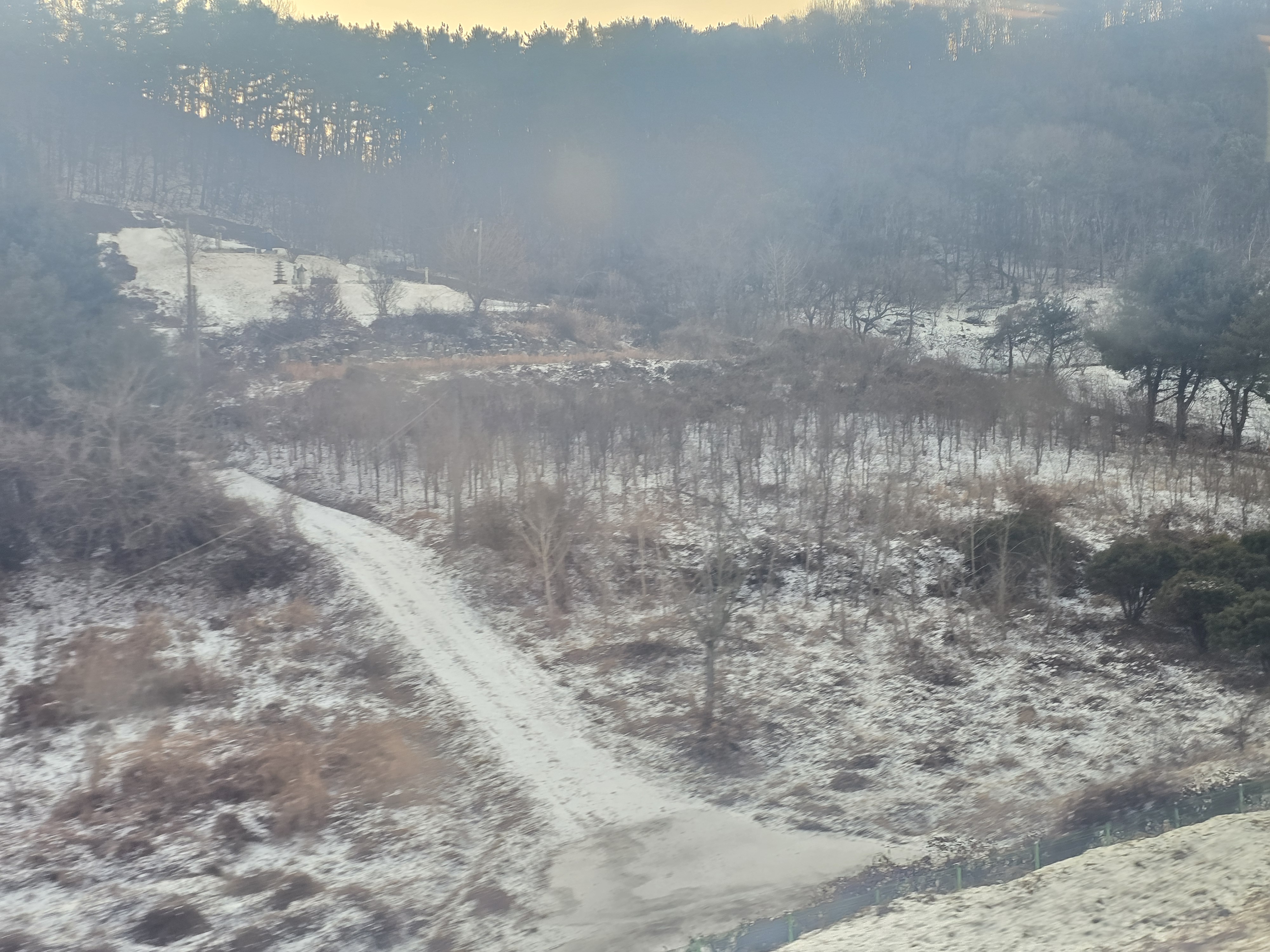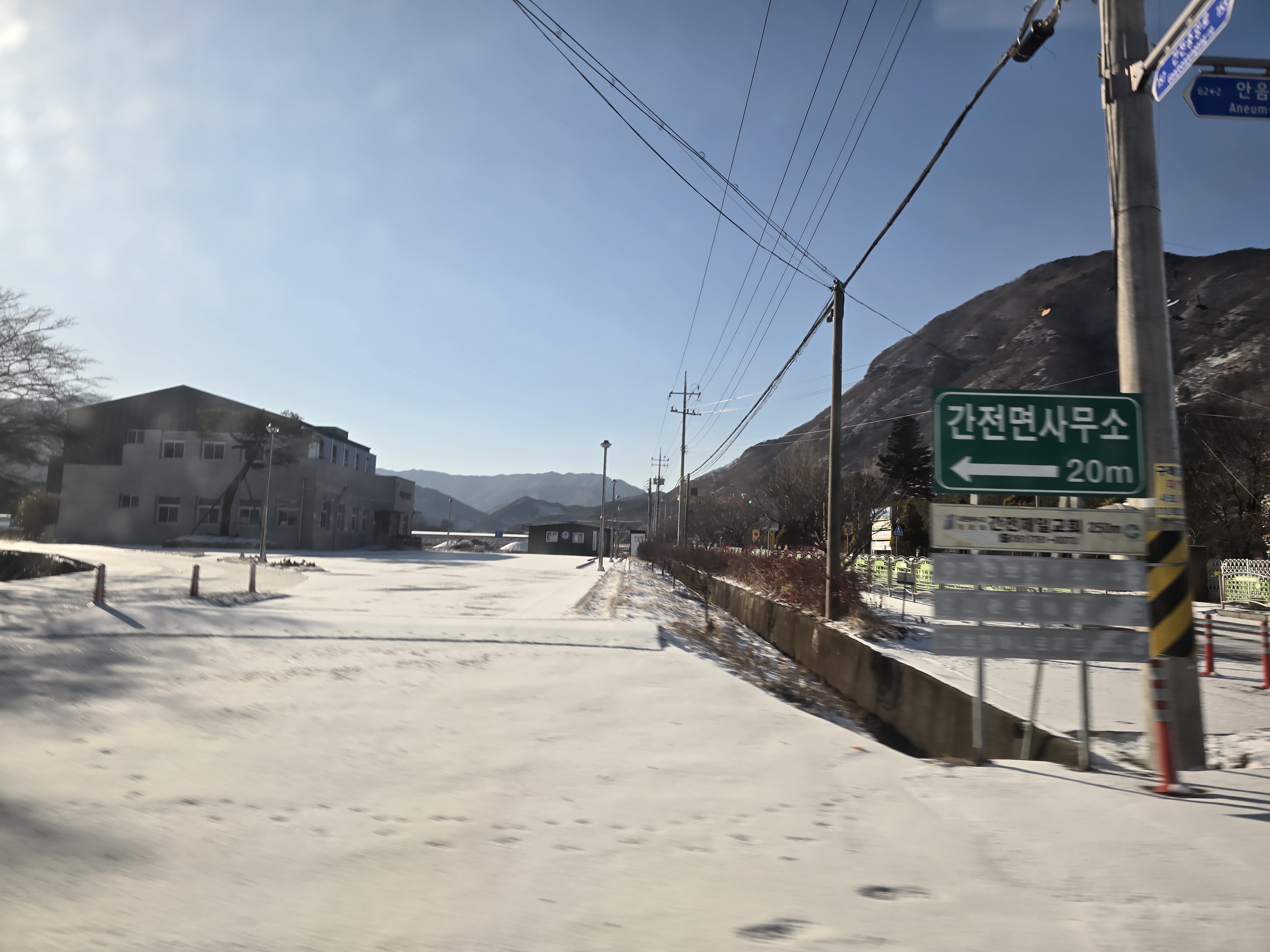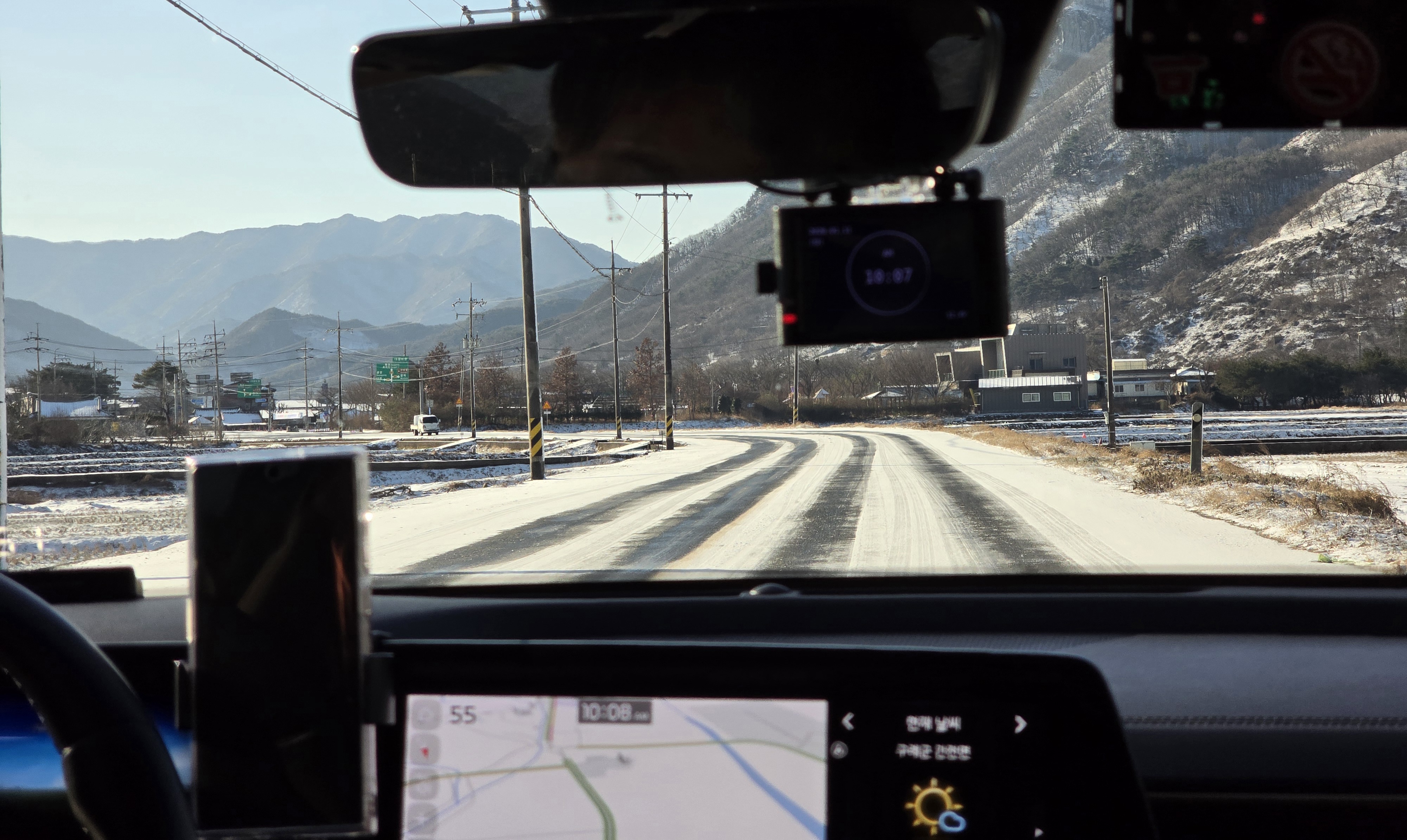 잔설이 있고 운전이 조심스럽습니다.