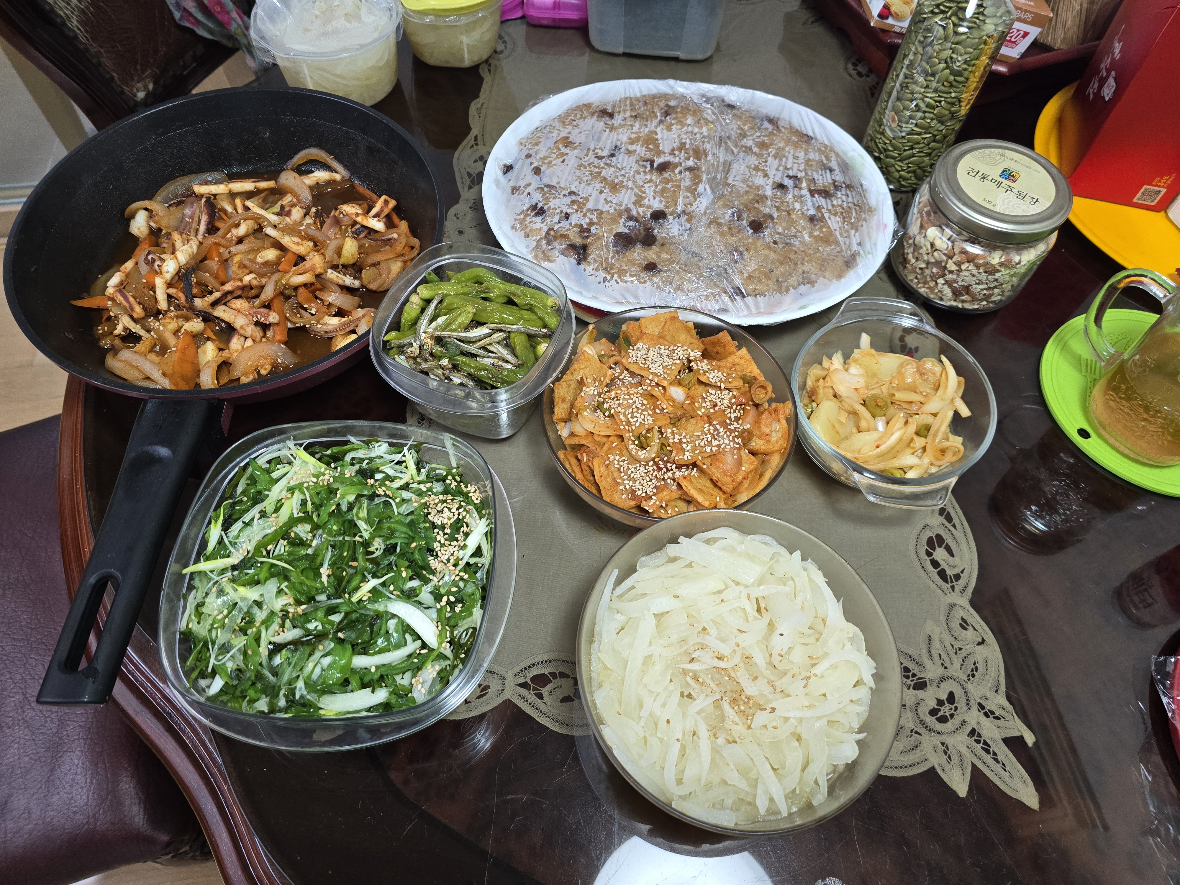 왼쪽부터 오징어 볶음, 아침에 밥대신 두쪽 드시는