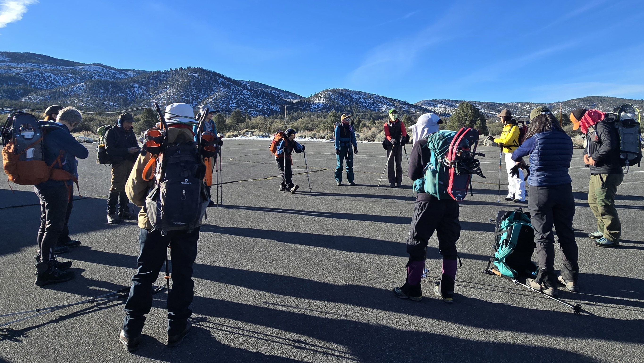 대부분은 배낭에 눈신을 달고 있고