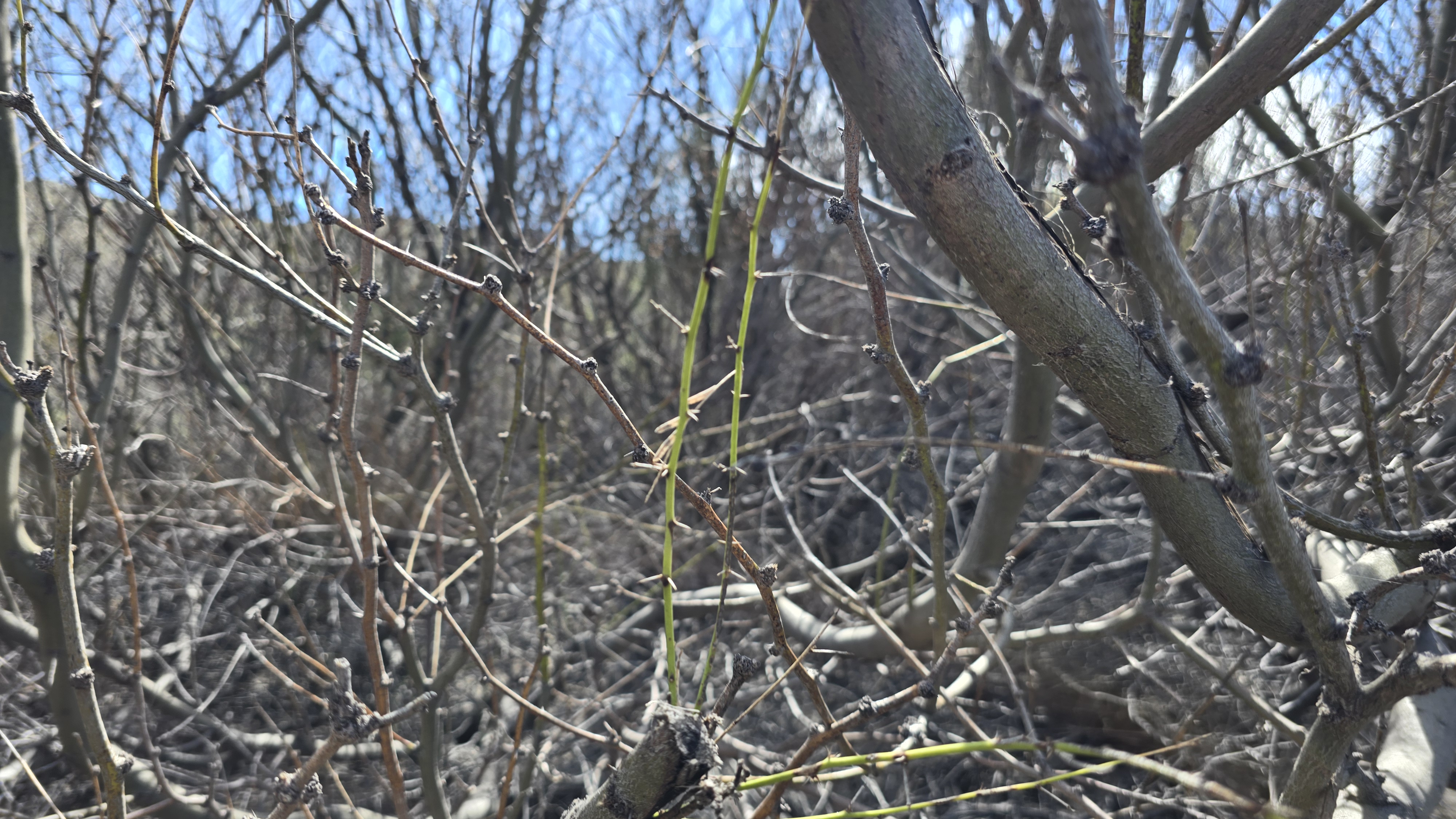 죽은 듯한 나뭇가지만 보입니다.