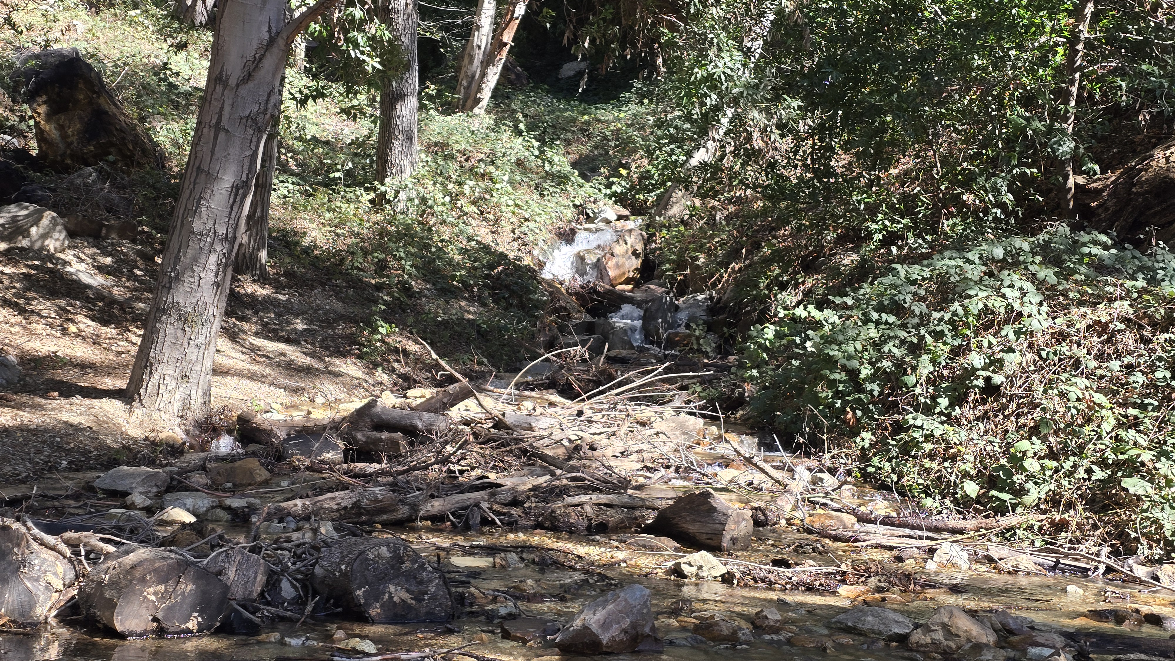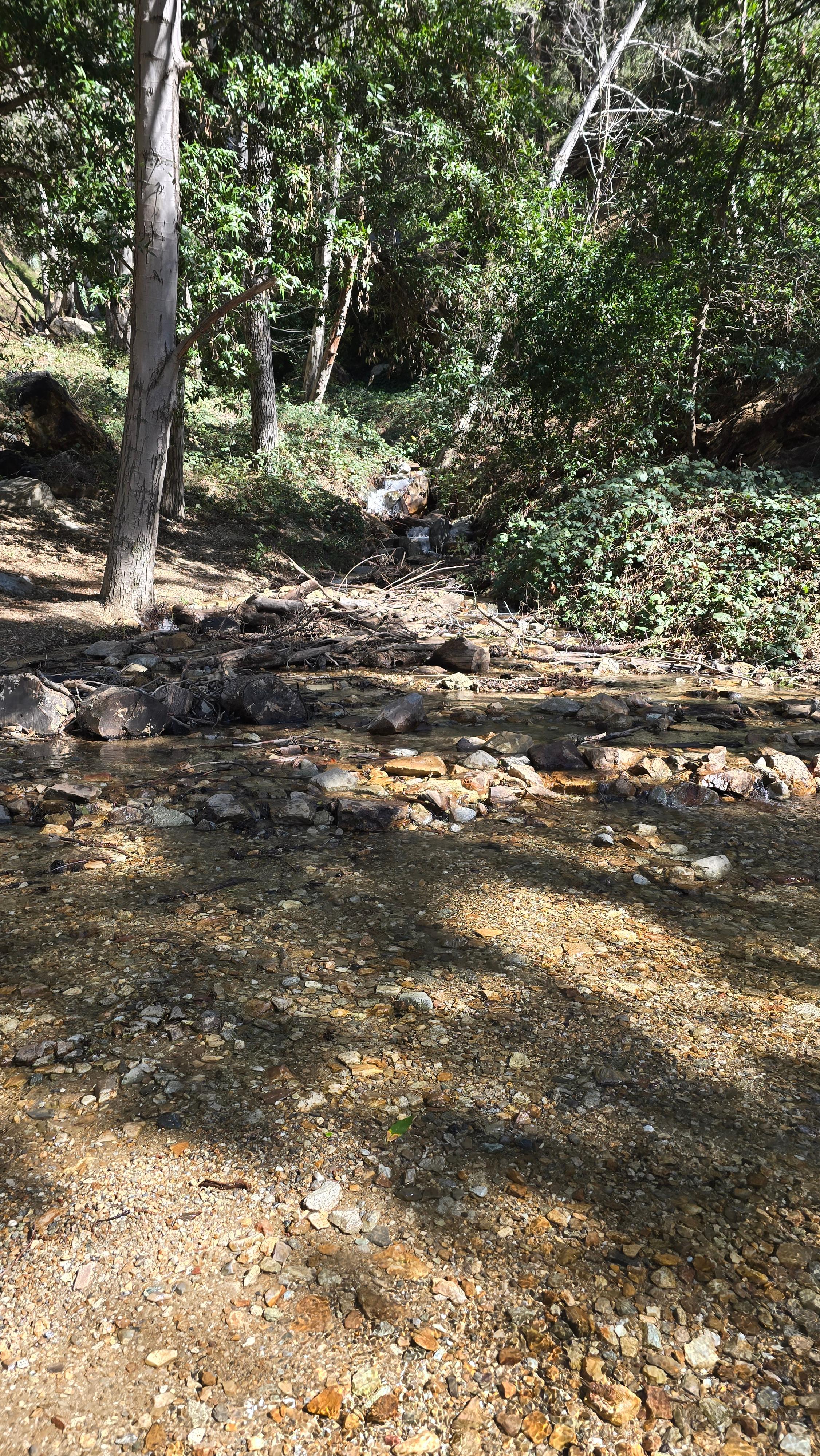 길을 가로지르고 흐르는 계곡물을