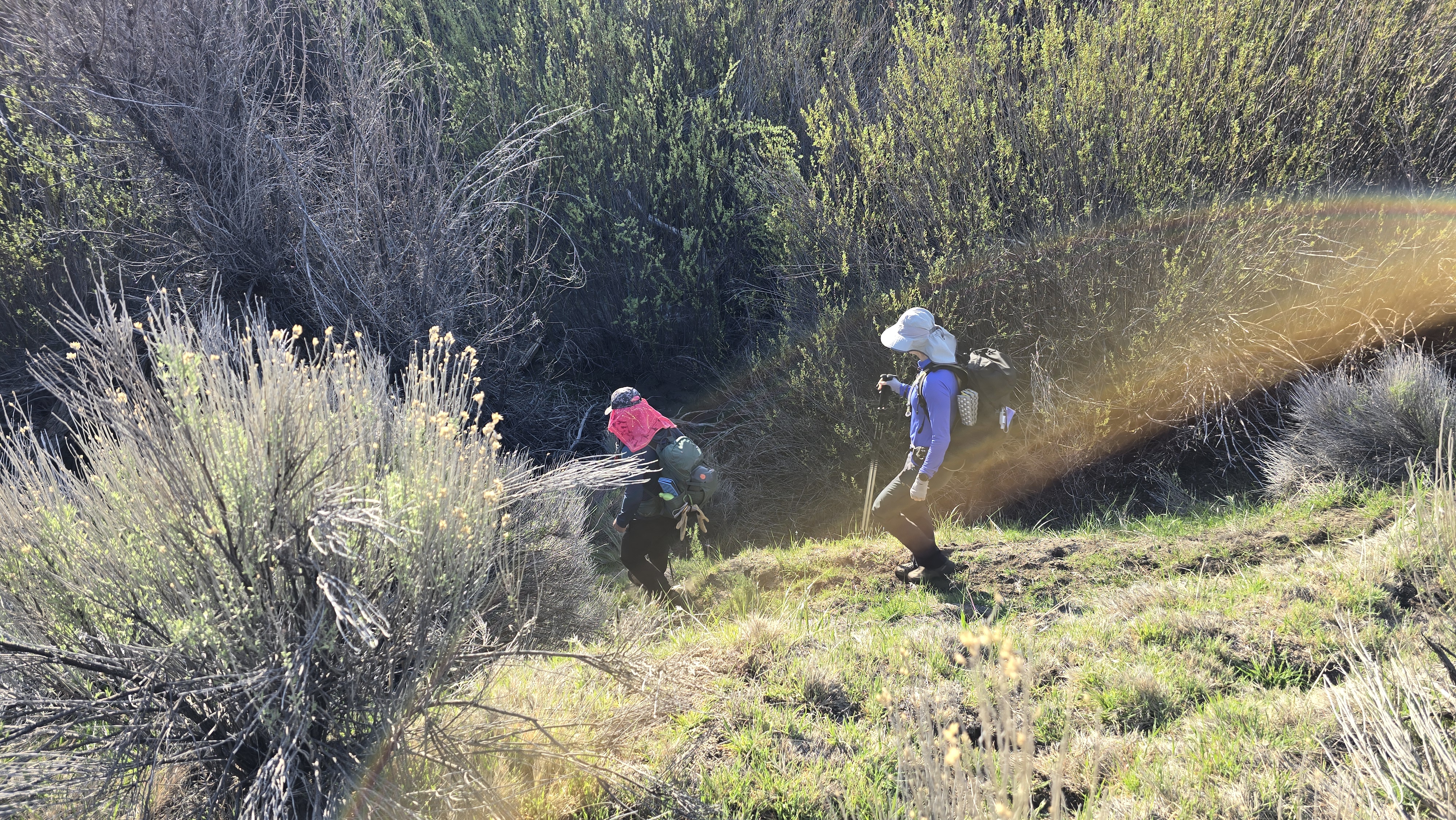 우리를 보고 인사하는 두 하이커는
