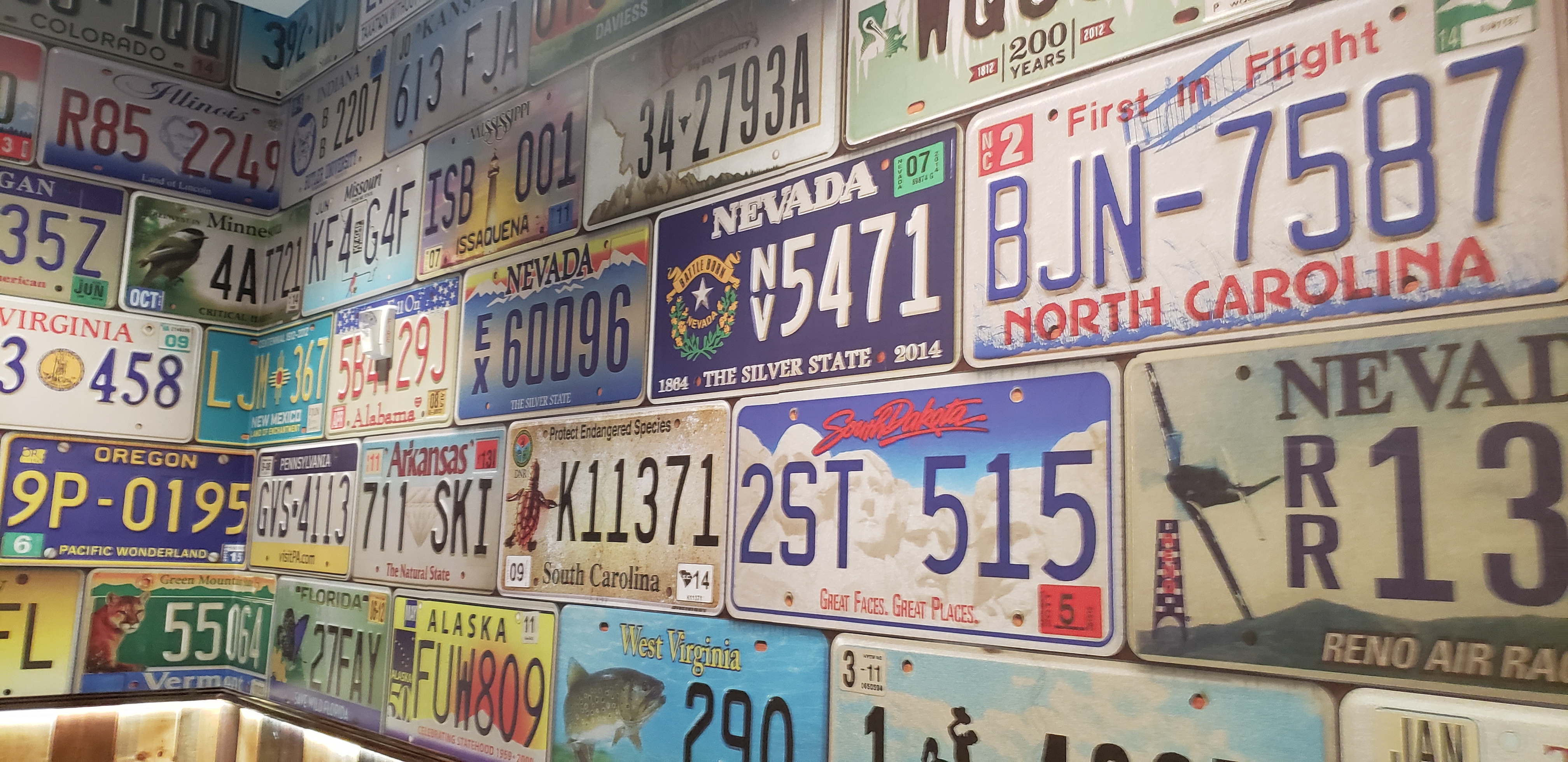 각 주의 차량 번호판이 재미있습니다.